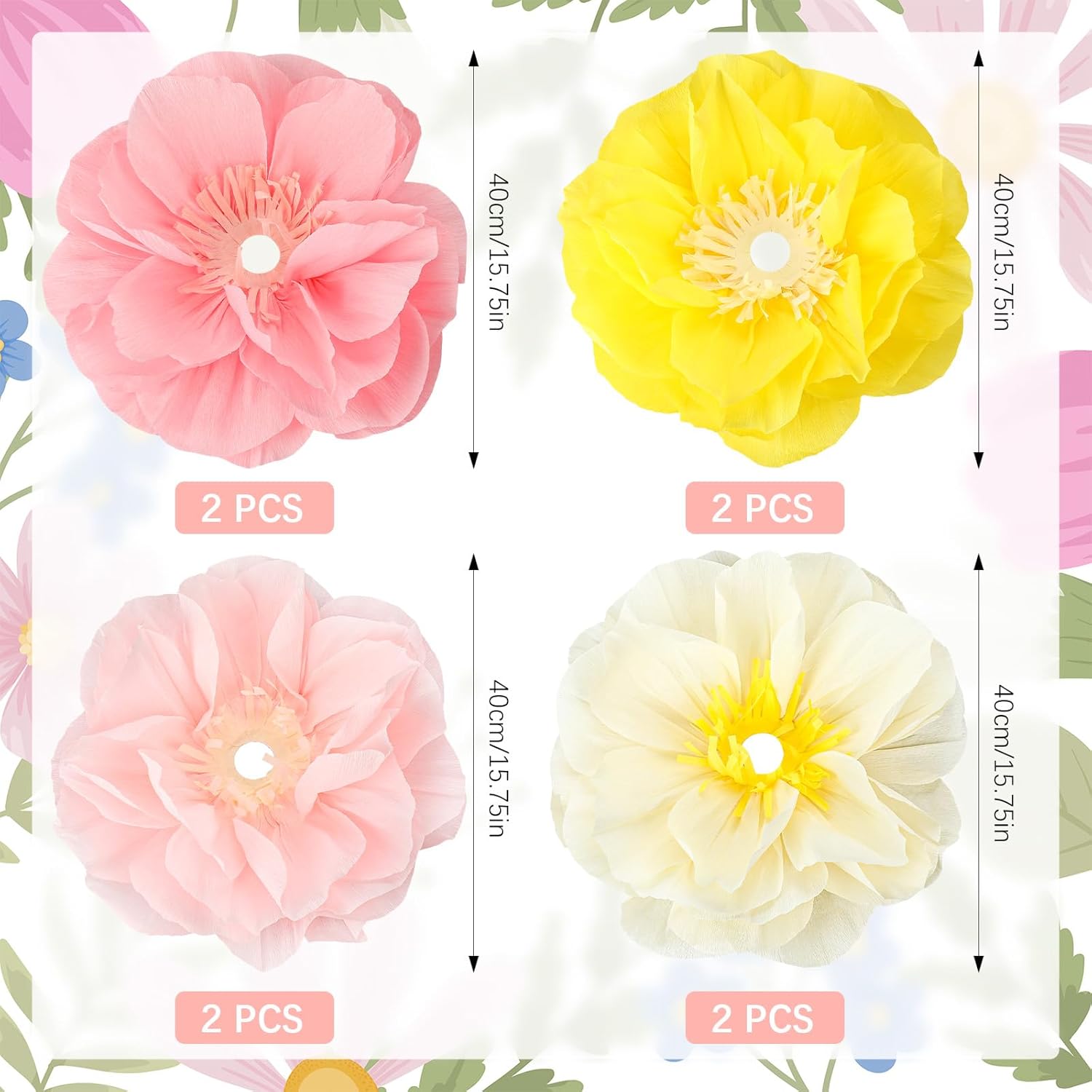 Features: Wide Applications: these decorative flowers are suitable for any indoor and outdoor scene decoration, such as baby shower, wedding, anniversary, bachelor party, family gathering etc. And they are very suitable for tables, gardens, or hanging decorations to create an unforgettable festive atmosphere Dazzling Visual Appeal: our pink paper POM flowers are vibrant and fresh, captivating guests and elevating your event aesthetic. Use them for DIY decorations, scatter them on dessert tables, or present them as elegant centerpieces in vases for a memorable ambiance Specifications: Material: paper Color: pink, rose pink, white, yellow Size: Giant paper flowers: 15.75 inch /40cm Package includes: 8 x Giant paper flowers Notes: Manual measurement, please allow slight errors on size. The color may exist a slight difference due to different screen displays
