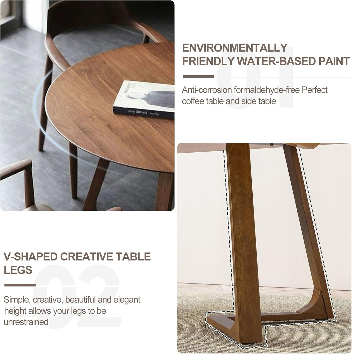 • 🌟【Circle Charm, Dinner Table for 4】:This small walnut round dining table seats 4 comfortably, perfect for family meals. Its circle design fosters intimacy, making every dinner a special occasion. Stylish & space-saving, it's a must-have for your dining area.