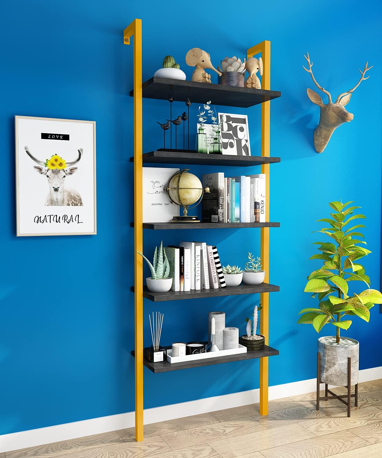 | Item Type Name | DKLGG 5-Tier Book Shelf Rack Against The Wall, Tall Ladder Shelf Wooden Bookcase Metal Frame Storage Plant and Flower, Single Standing Bookshelf Ladder for Living Room, Bedroom |