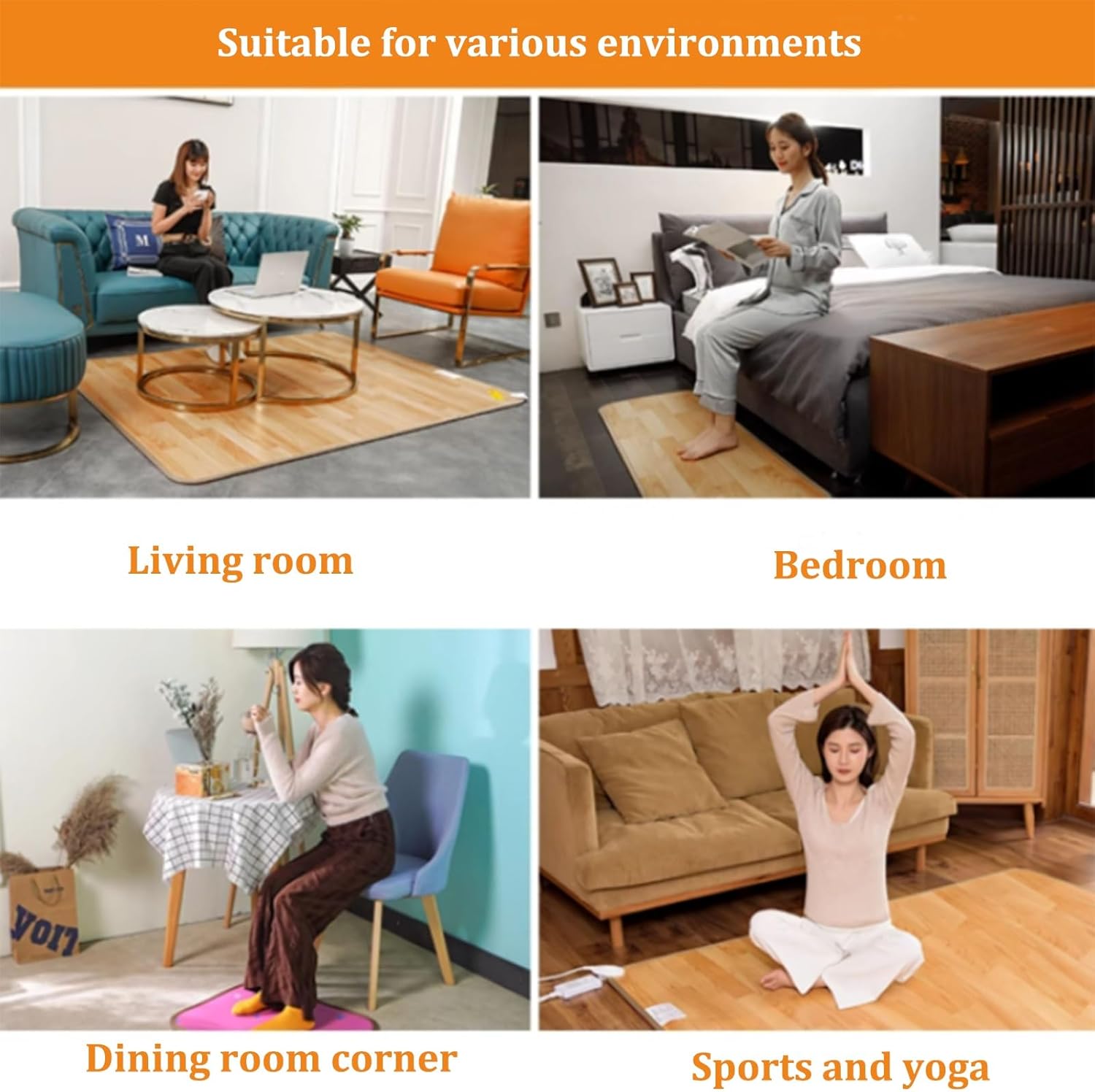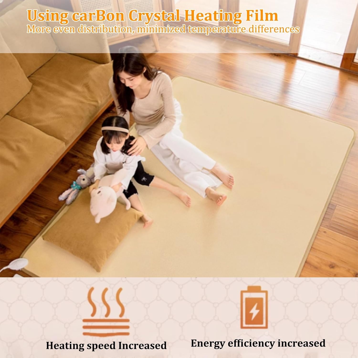 This heating pad utilizes graphene heating technology and features a honeycomb-shaped, three-dimensional heating structure for fast, even heating and a wide heat dissipation area. It also features an intelligent temperature control system for customizable temperature settings. It comes with a timer and overheat protection, enabling time-sharing constant temperature and saving energy. The surface is made of high-quality PVC leather, which is non-slip, wear-resistant, waterproof, and oil-resistant, making it easy to care for. It's suitable for living rooms, bedrooms, playrooms, offices, dining rooms, and study rooms. It can be used as a pet mat, yoga mat, mattress, sleeping mat, crawling mat, and play mat.Product Name: Electric Heated CarpetMaterial: PVC Leather, ABSHeating Method: Graphene HeatingVoltage: 220VCategories: Carpet, Electric Blanket, Room Heater, Heating PadControl: Button, TouchStyle: European, Retro, Bohemian, PastoralShape: RectangularFeatures: Fast heating, timer, constant temperature, waterproof, overheat protectionSuitable for: Bedrooms, living rooms, playrooms, balconies, dining rooms, officesDimensions:50x150 cm/19.69x59.06in100x100cm/39.37x39.37in50x200cm/19.69x78.74in100x150cm/39.37x59.06in100x200cm/39.37x78.74in150x150cm/59.06x59.06in120x200cm/47.24x78.74in150x180cm/59.06x70.87inPackaging:1 Indoor Space Heater