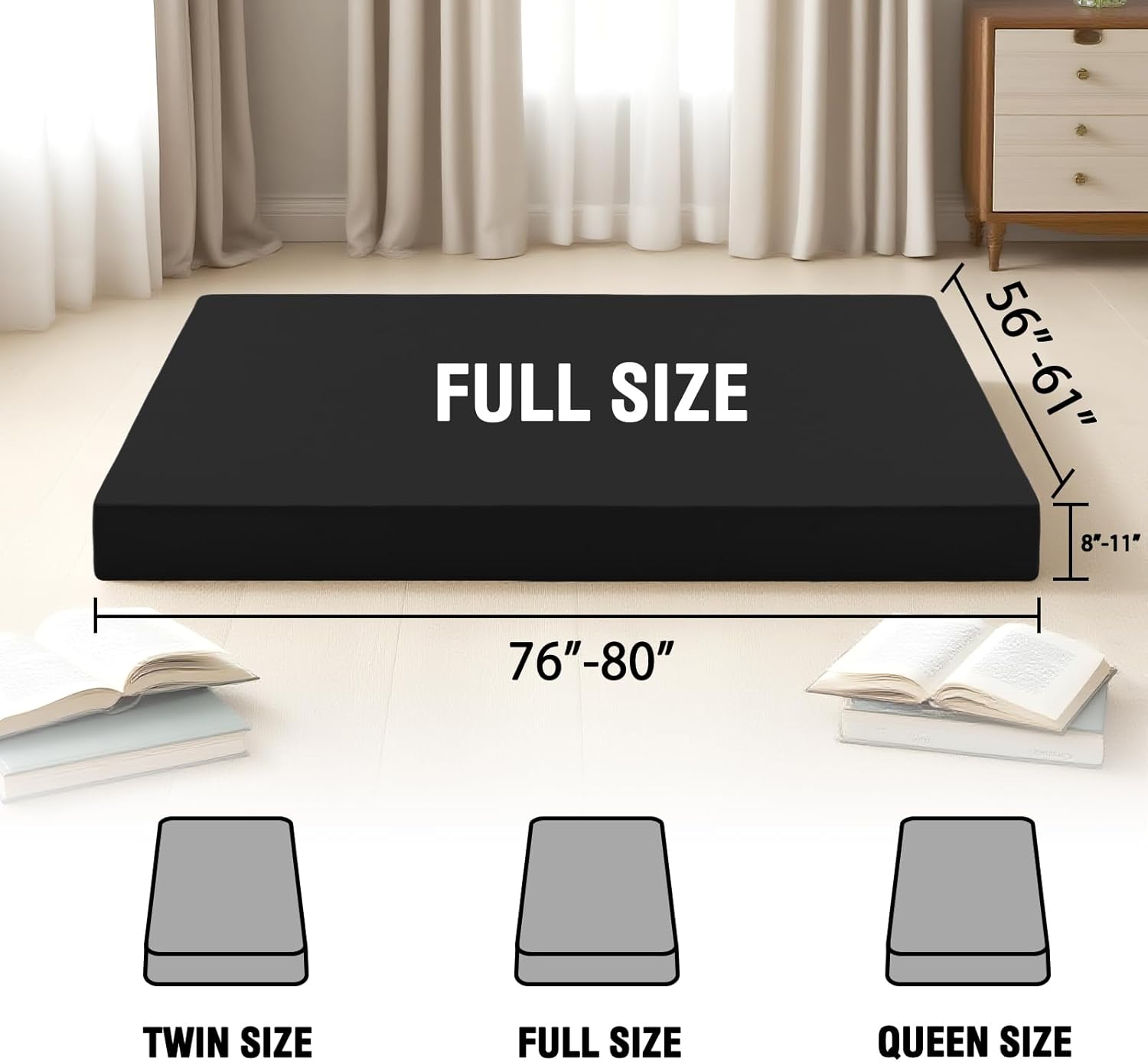 • PERFECT FITTED DIMENSIONS:Our Futon mattress covers are perfect fit for full size futon.It fits the length 77-81 inch; width: 56-61 inch; thickness: 7-11 inch.