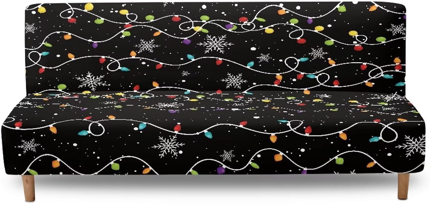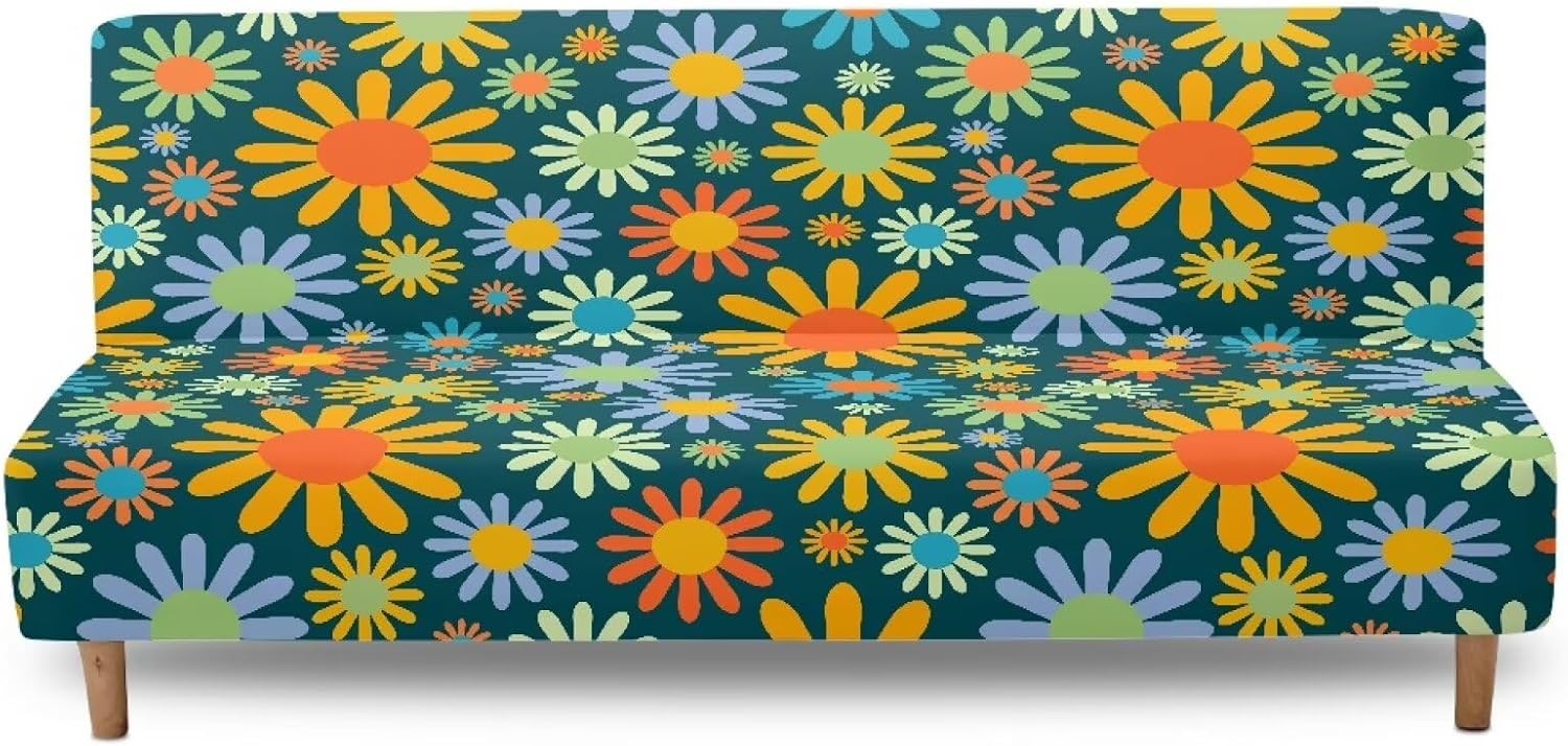 Psesaysky Stretch Futon Slipcovers Armless Futon Bed Cover Sofa Furniture Protector Without Armrests with Elastic Bottom for Kids and Pets Fabric-This super stretchable fabric makes the sofa slipcover more compliant with your sofa. Soft and comfortable fabric protect your sofa from daily wear and stains. No fading, machine washable, wrinkle resistant, sturdy and wear-resistant Elastic band design-High stretch slipcovers with elastic band, keep the sofa cover rigidly fixed in place. 360 degree all-cover your futon. Full coverage and better protection to your sofa furniture Multi-Purpose-Not only for armless sofa, but also suitable for folding sofa bed and low armrest sofa Stylish Design-Various stylish designs for you to choose, such as: marbles, tie dye, floral, sunflower, leopard, cow, galaxy, camo, mushroom, Halloween, Fall thanksgiving, Christmas prints etc. Stylish design will complement any decoration style