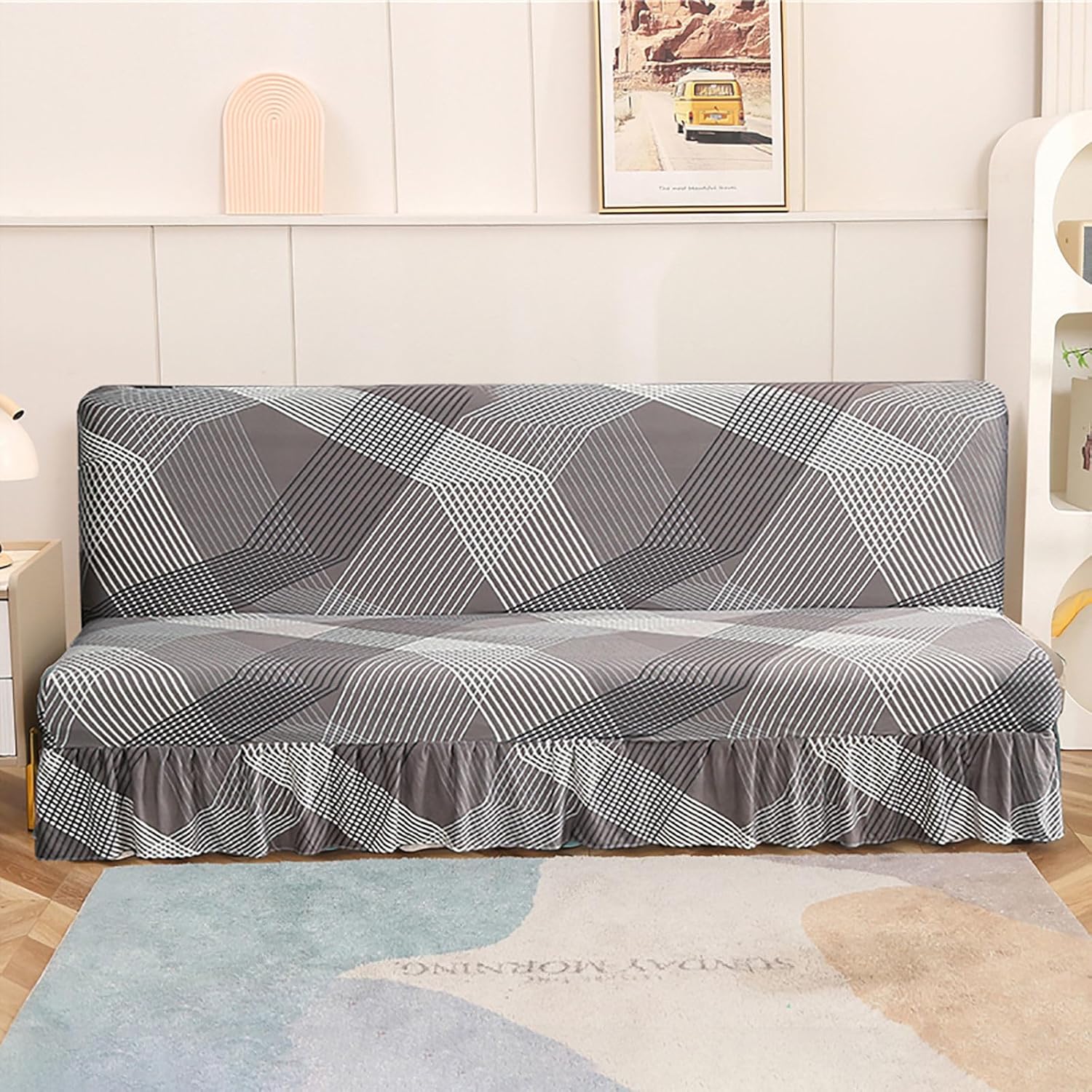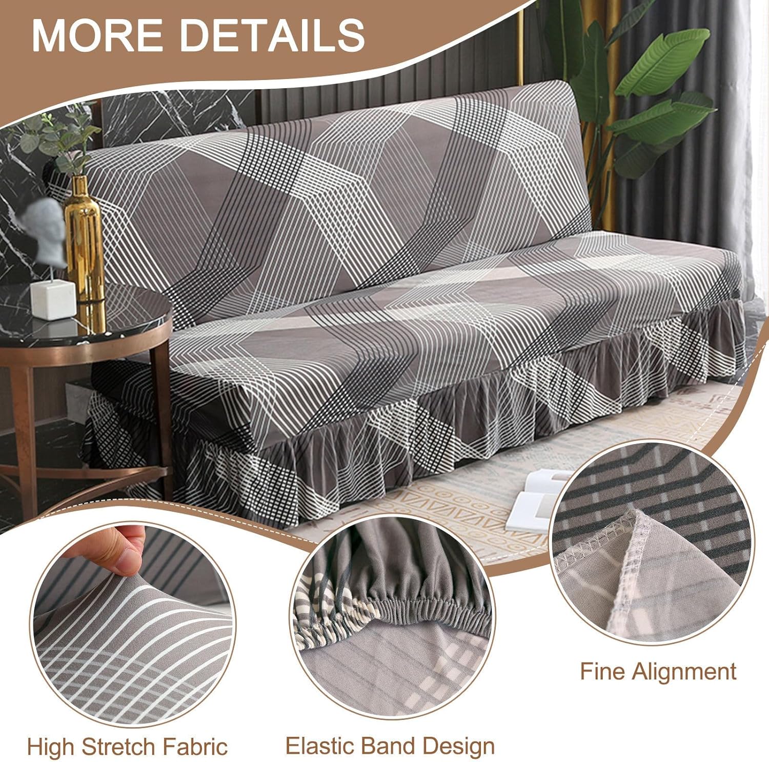 If you are looking for a decoration for your futon couch or tired of your worn-out futon, our ZRCYXDW futon slipcover can be your best choice!Premium Fabric:ZRCYXDW futon slipcover is made of 95% polyester fibre + 5% spandex fabric which is breathable, skin-friendly and extra soft to touch. Strapless design with the anti-slip elastic bottom, our futon slipcover can full stretch and cover the sofa tightly.Great Protection:This universal furniture protector provides a perfect all-round protection for your futon couch, protect accidental spills, pet scratches, daily tear and wears.Versatile Use:The futon cover is designed for most types of futon sofas, such as armless sofa, folded sofa bed and futon mattress. Suitable for families, restaurants, hotels, cafe, bar and other places needed.Size:Small: 47.2-59in(120-150cm) length, 35.4-47.2in(90-120cm)width, 4-8in(10-20cm) height.Medium: 61-72.8in(155-185cm) length, 35.4-47.2in(90-120cm) width, 4-8in(10-20cm) height.Large: 75-86.6in(190-220cm) length, 35.4-47.2in(90-120cm) width, 4-8in(10-20cm) heightNote:Before you buy, please read our dimension chart carefully. Normally, the size of a sofa cover should be slightly larger than that of a sofa.A little color difference is allowable due to different light and screen.