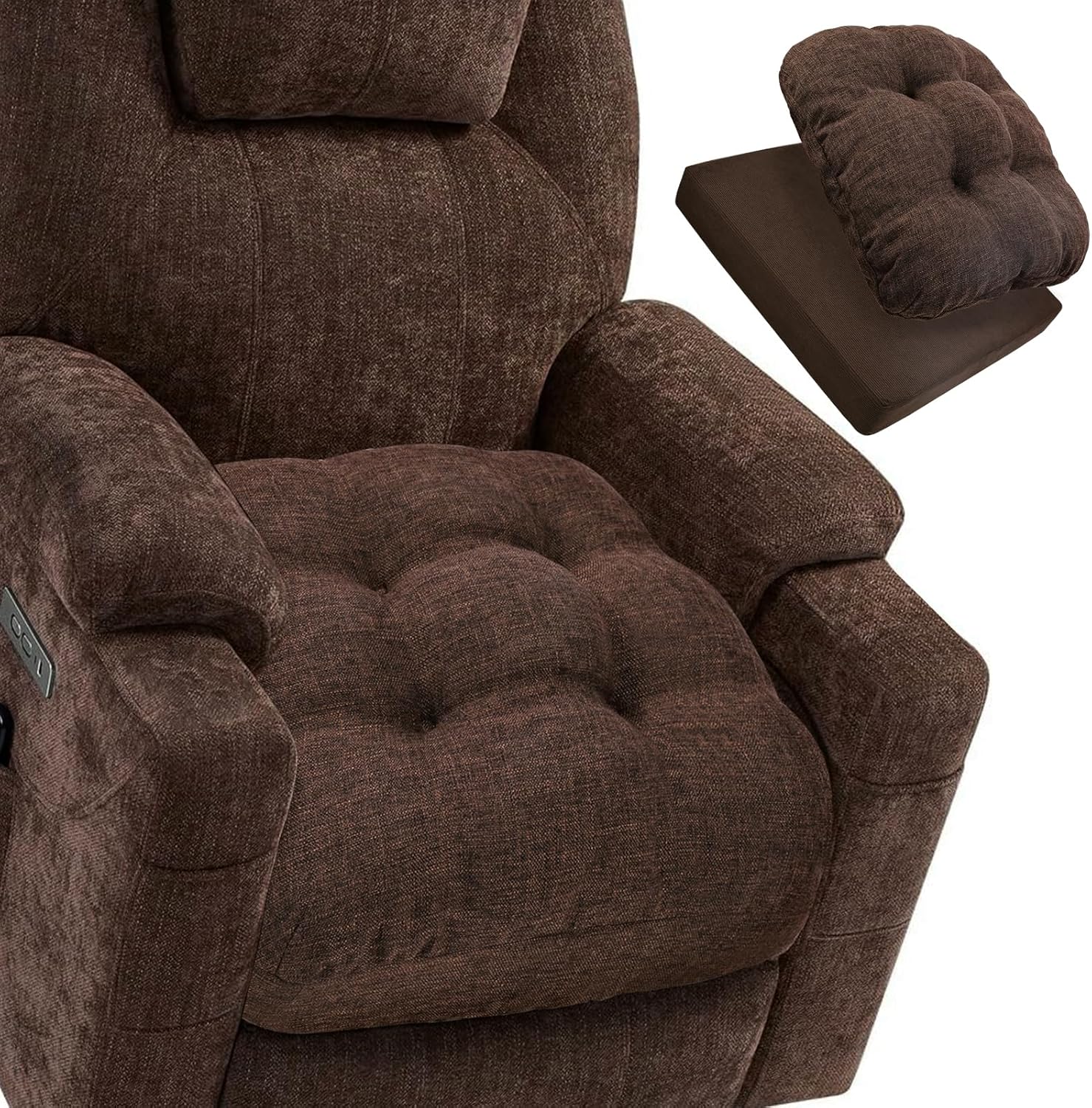 BUYUE Natural Latex Foam Support Chair Cushion for Elderly, 2-Tier Removable, 2-Faced Reversible Recliner Chair Pad Couch Armchair Seat Cushion Replacement, 20" x 20" x 5", Beige