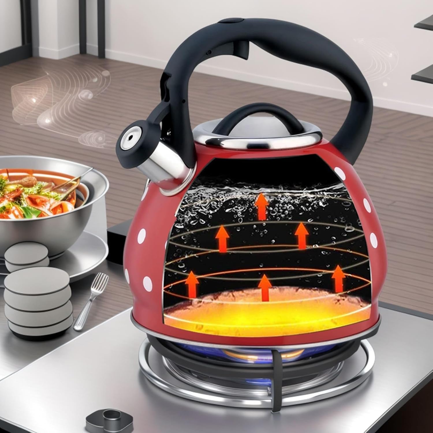 Product description:material : 304 stainless steelCapacity: 3 litersApplicable scenes: Home kitchen, living room, dormitoryProduct use: boiling water, tea, etc.Applicable stoves: gas stove, induction cooker, electric pottery stove, etc.Note:The water level of the teapot is the highest. Do not j add water to fill it up, otherwise the flute will not make a sound and the water will splash out at the same time.The amount of water should not be too small to avoid dry firing.Avoid too much heat to boil water, which will affect the service life of the bottom of the pot.Don't dry boil the kettlePay attention to anti-scalding and prevent children from touching it.When cleaning the kettle, pour it into food-grade citric acid and soak it for 5-10 minutes.All decorations in the picture are not included in our product range.