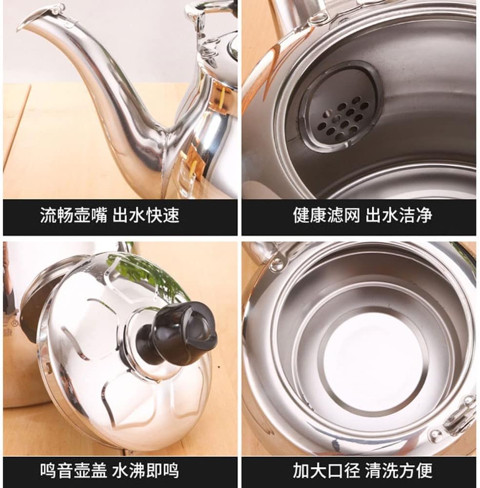 This is a household kettle made of high-quality materials that is practical and functional. The kettle heats up quickly and the heat preservation effect is good. Elegant and stylish design. The eagle mouth water outlet design, pouring water does not splash. Widely used in tea, hot water and so on.Stylish and functional, this whistling teapot is the perfect kettle in your kitchen. The easy-grip handle of the teapot ensures safe pouring of hot water or tea and enjoy a perfect cup of tea. It boils water faster and is helpful in your kitchen when you want a cup of tea or are planning a tea party. The Ideal Kitchen Stove For Induction Kettles, Add To Cart Now!Name: Kettle/TeapotMaterial: Stainless steelCapacity: 2.5L/4L/5L/6LProduct features: high temperature resistance, durable, boiling water whistle, anti-scalding handlePackage Included:1 X KettleApplicable stoves: gas stoves, induction stoves, light wave stoves, electric stoves, ceramic stoves, halogen stoves, electric heatersfeature:1. When the water is boiling, the whistle design will remind you2. Heat resistant handle protects you from boiling water3. Will not burn black, will not burn white pot4. Healthy cooking5. Smooth and non-porous, very washablenotes:Due to light and shooting angle, the actual color of the item may be slightly different from the picture color.