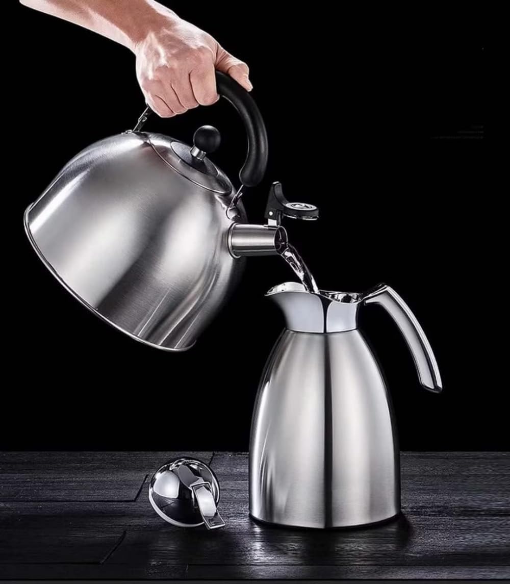 Features:304 stainless steel material.Anti-scald handle.Spout with whistle cover.Kettle lid with anti-scald bead.Thickened 5-layers composite pot bottom.Large diameter opening mouth and spout,easy to inject water.Parameters:Material:304 stainless steelCapacity:3L.4L.6L