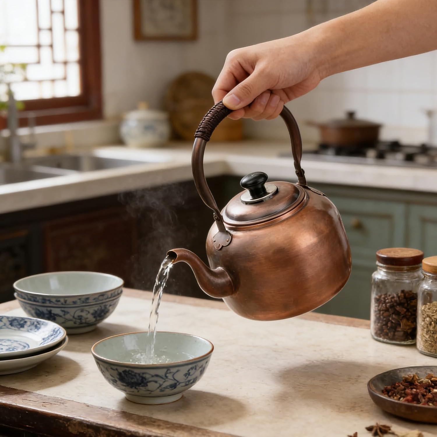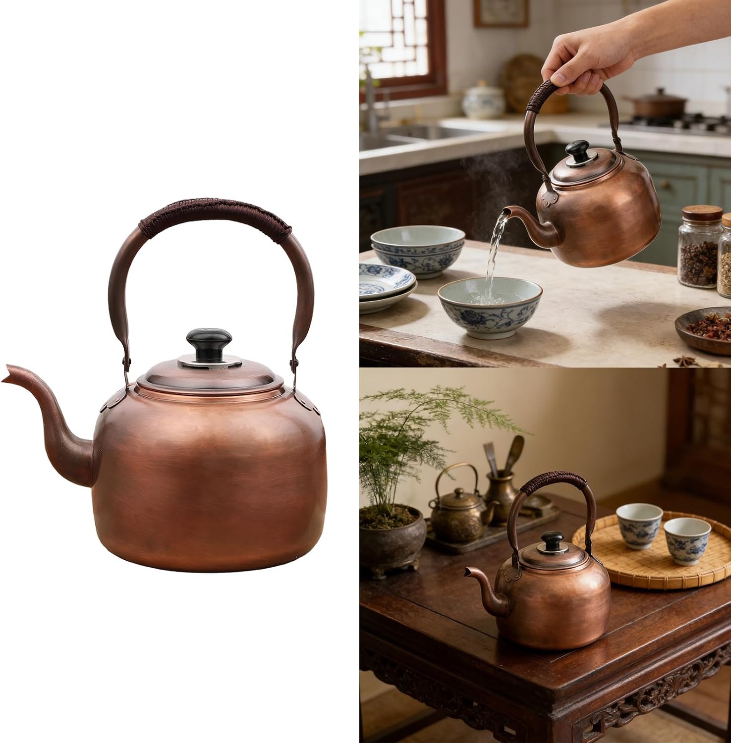 Copper Whistling Tea Kettle For And Induction Cooktops Ergonomic Teapot Easy to with Ergonomic Handle Features : Enjoy versatile cooking with our whistling tea kettle , suit for induction cooktops and stove , efficient copper heating , and a whistling alert when water reaches boiling points Crafted from premium copper for rapid heat conduction , this stove top kettle boasts an easy surfaces that enhances any kitchen aesthetic Ideal for busy households , families with or seniors seeking safe boiling alerts , and anyone valuing quick beverage preparation without appliance compatibility concerns Perfect for daily kitchen use , outdoor adventures like camping , and elegant afternoon tea gatherings where boiling notification and portable cookware are essential practical with this copper kettle that combines timelesses aesthetics with modern functionality for everyday convenience Specifications : Component : Copper Size : Approx 3L : 16x27x28cm / 6.3x10.63x11.02inch 5L : 17x32.5x28.7cm / 6.69x12.80x11.30inch Package Includes : 1PC Tea Kettle Note : 1.Please allow 1-2cm errors due to manual measurement , make sure that you will not mind before you order 2.Due to the differences between different monitors , the picture may not reflect the actual color about the item