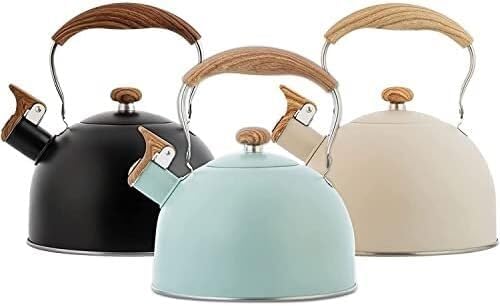 Easy to clean and heats up quickly. Specification: Name: whistle kettleMaterial: Stainless steelCapacity: 2.5LSize: 22.5x19.5cmThe thickness of pot body: 0.35mmWeight: 448gApplicable stoves: induction cooker, gas stove, electric ceramic stove, etc.Uses: Make coffee, make milk powder, make tea, boil waterPacking list:1×Stainless steel Whistling tea KettleApply to various stovetops: It is suitable for any heat source including induction cooker, electric furnace, gas and natural gas stovetops Please use this teapot over small or medium heat, it heats very fast and saves energy.