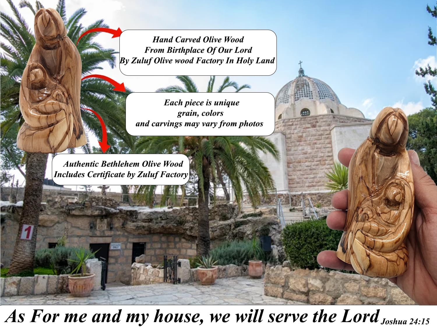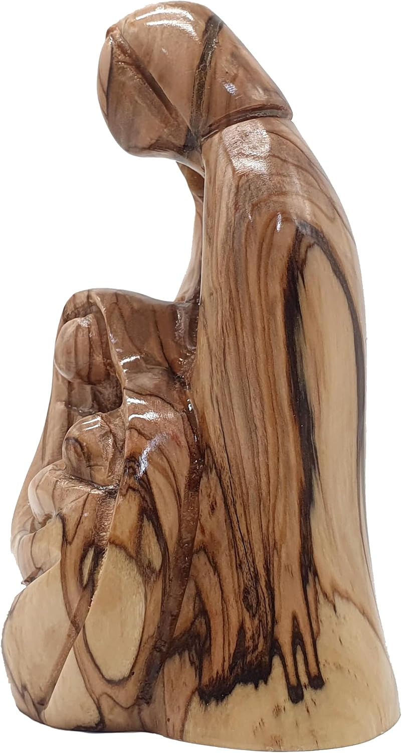 Not just a nativity set. This 4.9” carved olive wood scene feels like it remembers something. Joseph standing watch. Mary curved gentle over baby Jesus—peaceful, small, real. It’s one solid piece, handcarved in Bethlehem, from old Holy Land olive wood. You can still smell the olive sometimes when it’s warm. Put it on your table, or under the tree, or wherever your family gathers. Looks good on a shelf too—church vibe but cozy. Every curve of the wood is just a bit diff’rent. Some have knots. Some don’t. Some lean a little. That’s the beauty tho. That’s what makes it more than decor. You ain’t buying plastic. This is real. Catholic home gift, Christmas manger scene, small enough for indoor spots but big on feel. A simple wooden reminder of family, faith... and that one night everything changed.