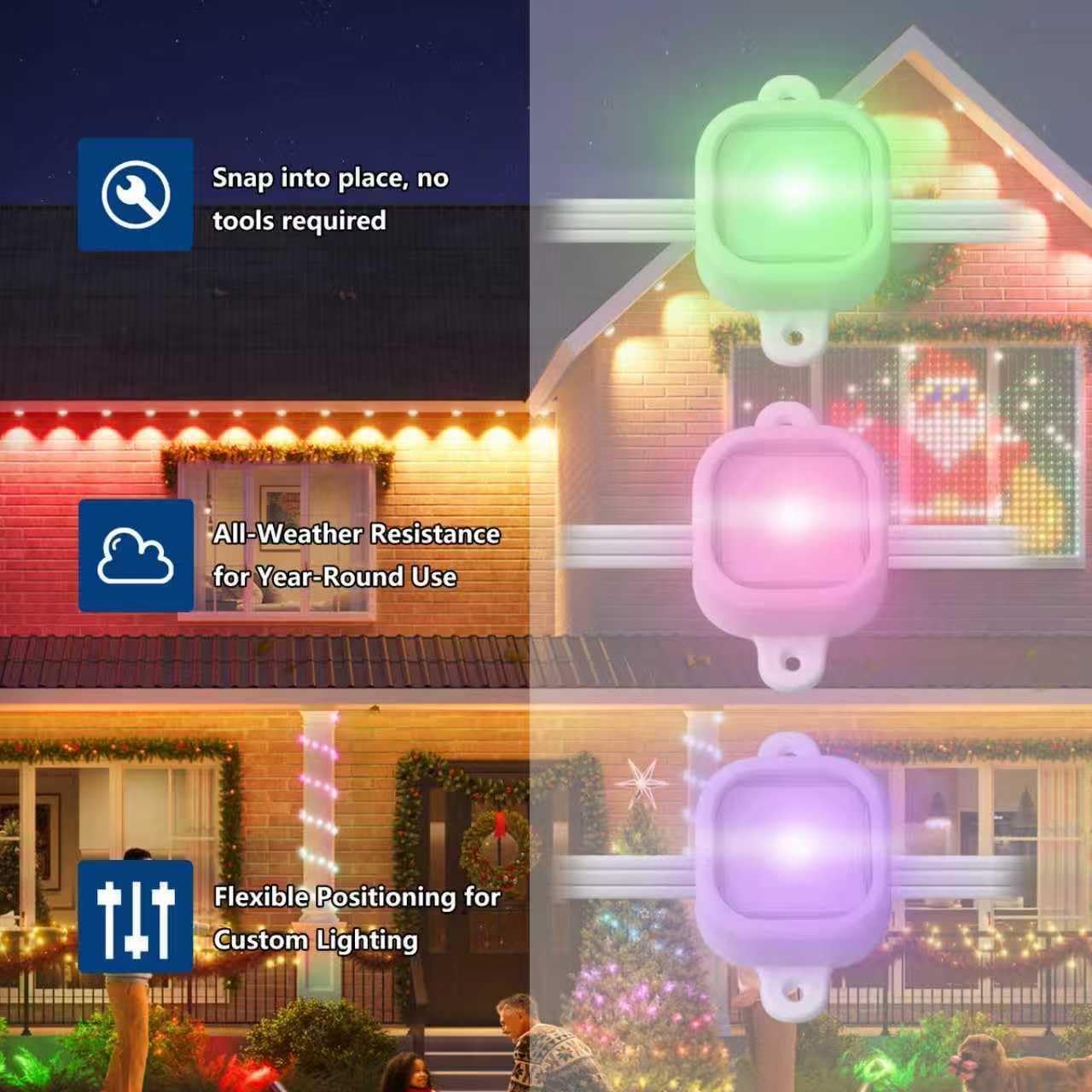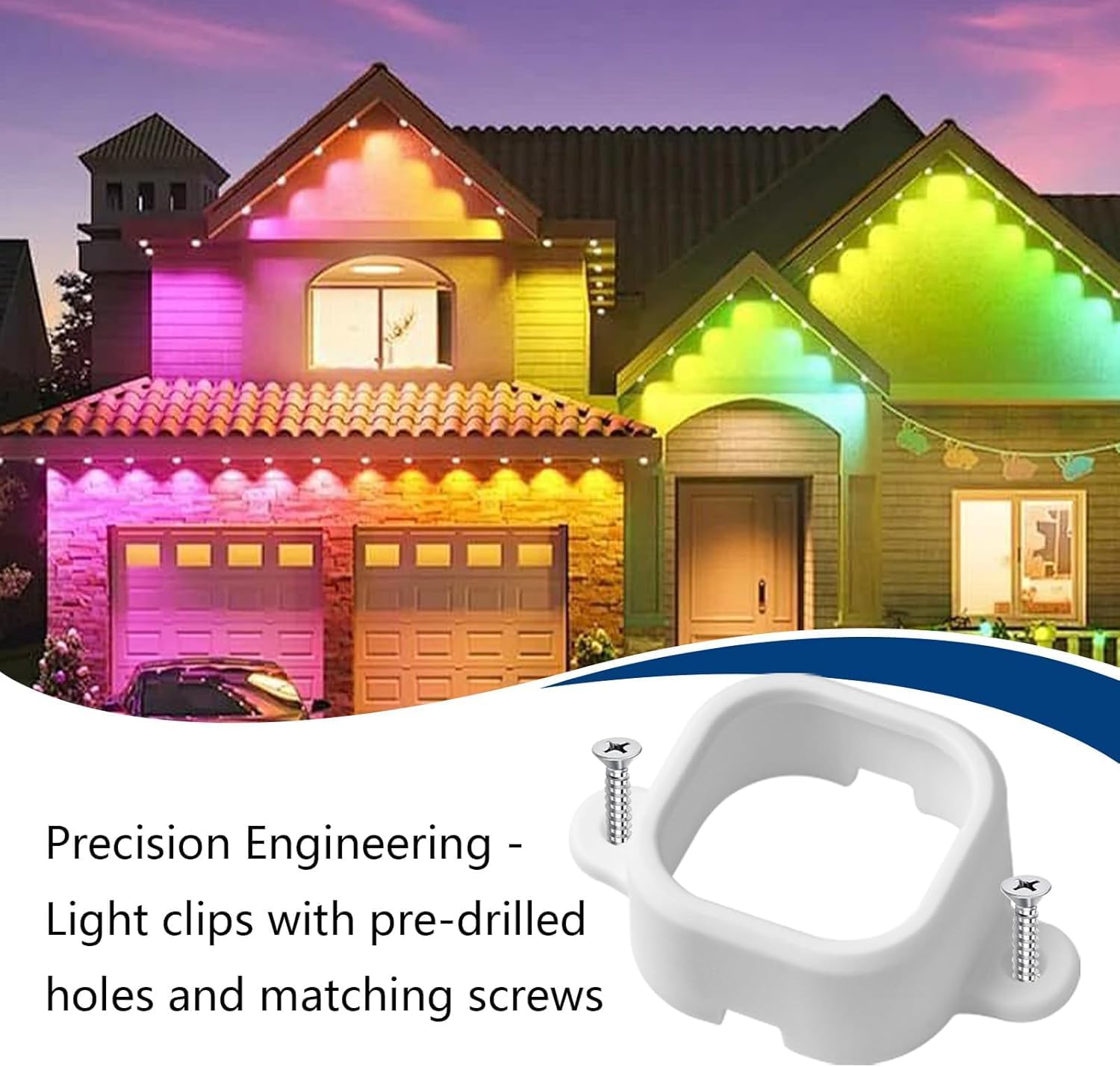 • Durable and sturdy: Designed for Govee Permanent Outdoor Lights (H706A, H706B, H706C),these clips keep your lights firmly in place without relying on adhesive. Each clip surrounds the light module completely and is securely fastened from the top, offering dual protection to prevent your lights from falling or loosening.