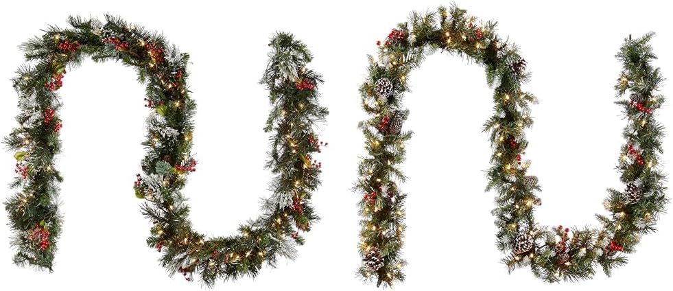 Transform your home for the winter holidays with National Tree Company's Pre-Lit Artificial Christmas Garland. Designed with a Wintry Pine branch base, this garland is 9 feet long and decorated with pine cones and berry clusters. These beautifully ornate decorations complement the garland’s natural looking branches. Made to look and feel lifelike, the stunning realism of the tree is defined by its close attention to detail, featuring tens of individually crafted branch tips that create a full bodied garland. This fantastically festive garland is strung with white UL lights prior to packaging for a more convenient setup. The lights operate individually, so if the bulb lens has not been cracked or broken, the light set will continue to illuminate except for any individual bulbs that are not working. To power the lights, simply plug them into the nearest outlet and let the pre strung lights illuminate your home with the warmth and cheer of the holiday season. Hang this decorative garland over any door, window or mantle to bring a Christmas ambience into any room or covered porch. Constructed with sturdy, high quality materials and hypo-allergenic, fire-resistant needles, this tree is built to bring holiday cheer for years to come. This hanging decoration is suitable for both indoor and covered outdoor use. At National Tree Company, we strive to create high quality Christmas decorations to help you transform your home so you can keep making every holiday moment magical.