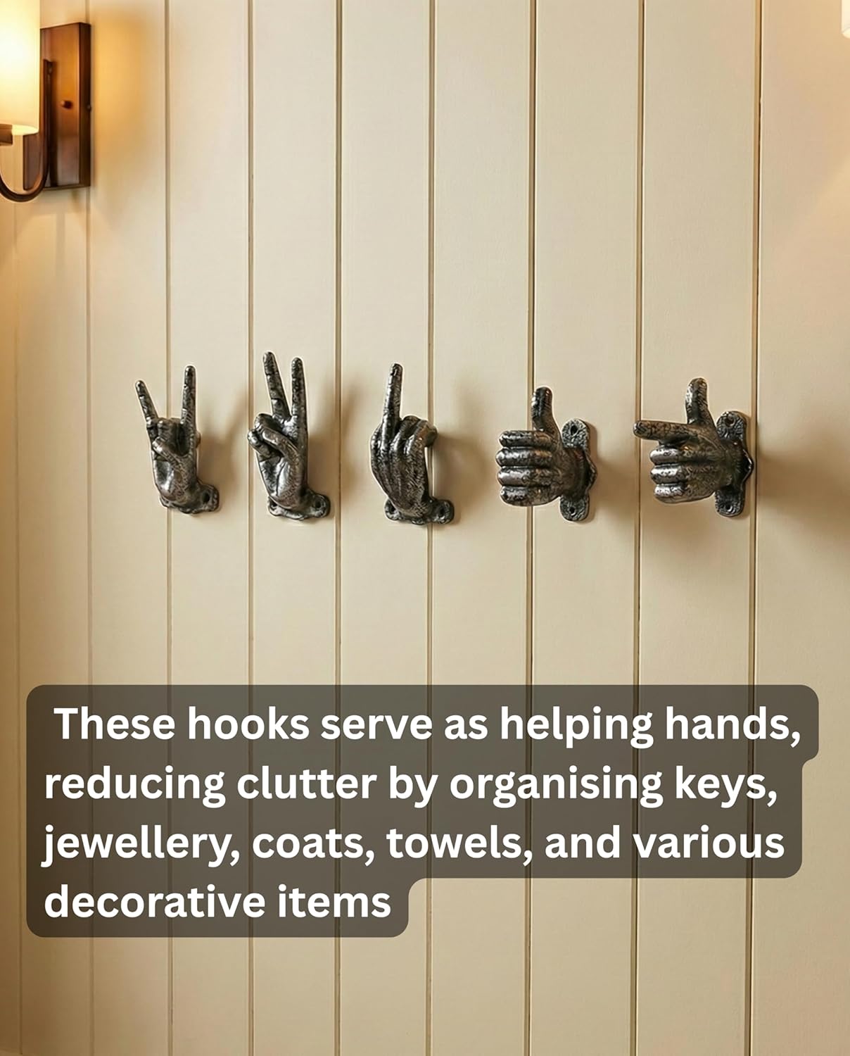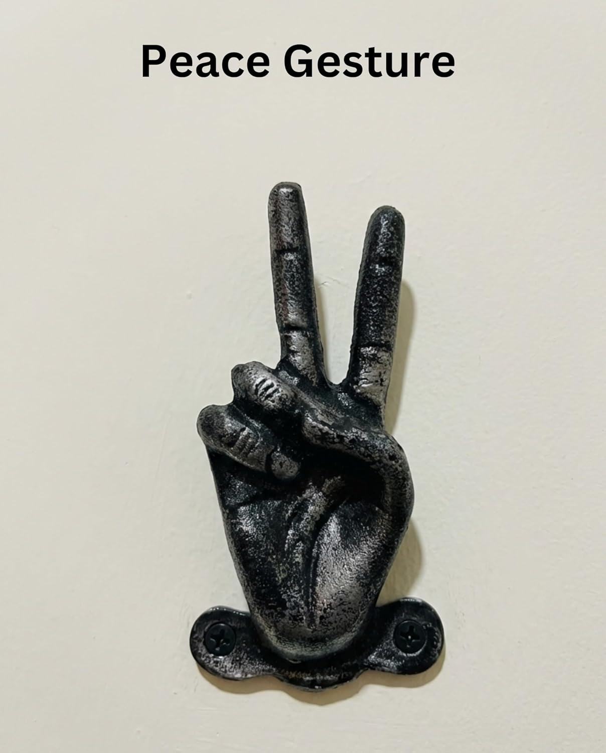 * Perfect Dimensions - Each gesture hook has unique measurements - Peace (2x1.5x4 inches), Rock On (2x1.75x4 inches), The Finger (2x2x4 inches),Finger Thumbs up & Pointing Finger ensuring their individual presence and functional appeal on your walls. * Long-Lasting Material - These hooks are crafted from High Quality Aluminium, featuring a Multiple finishes , ensuring durability and a maintenance-free display. Their sturdy build guarantees years of reliable use and a touch of timeless elegance.