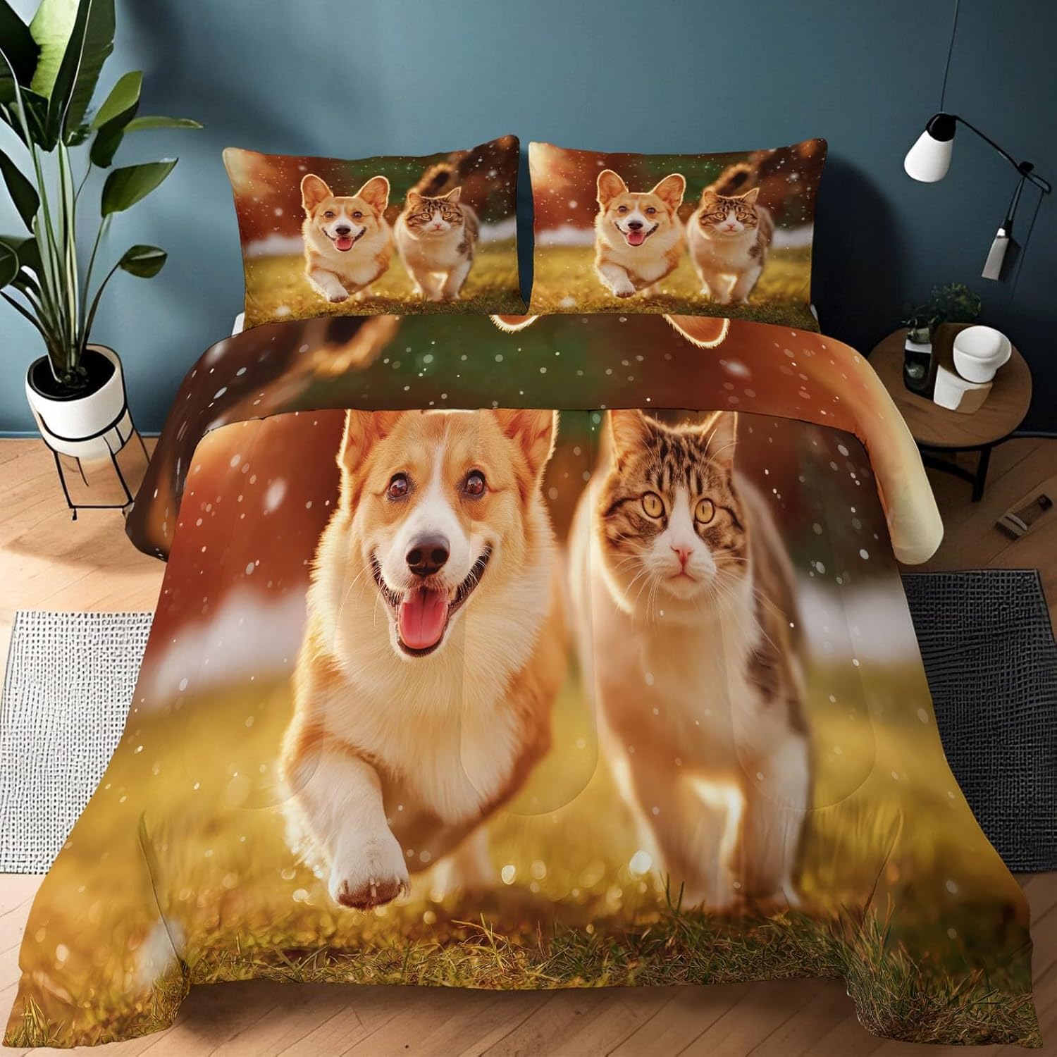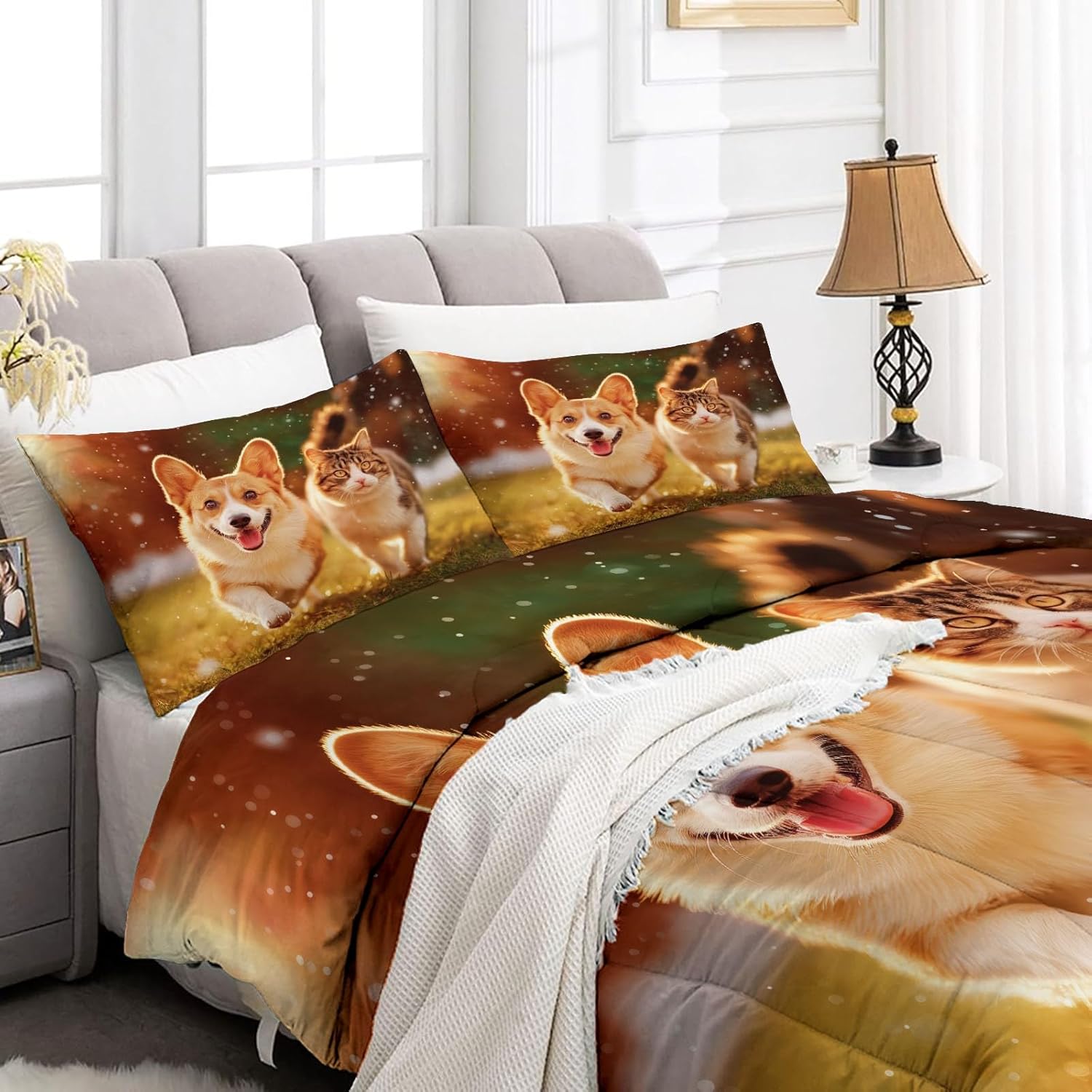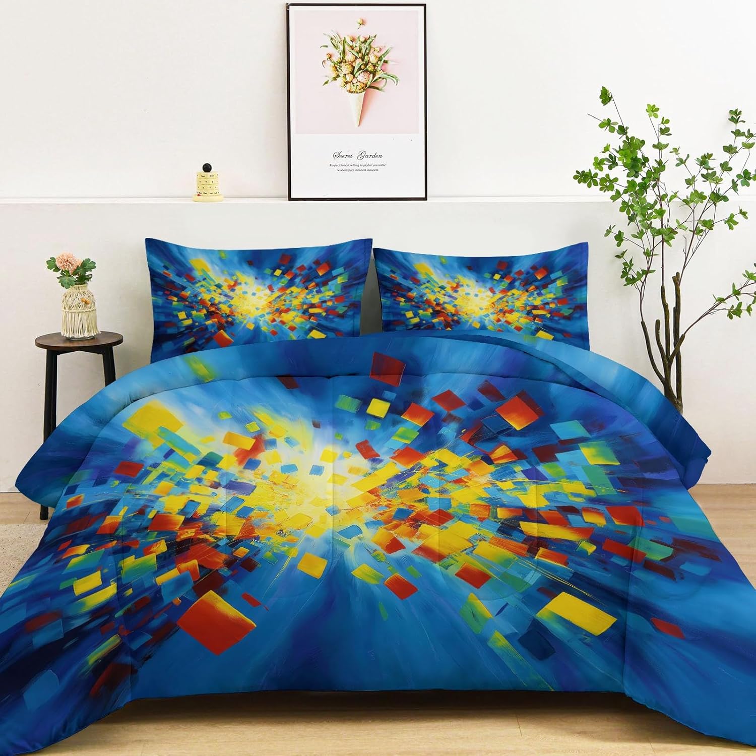 Transform Your Bedroom with Style and Comfort Key Features: Excellent Craftsmanship Hidden stitching design secures the filling in place to avoid shifting and clumping while presenting a original look of the comforter. Made of light brushed & pre-washed microfiber, with high tensile strength, comforter sets are durable for longtime use. Soft and Cozy Our comforter features breathable microfiber filling, offering lightweight fluffiness and exceptional comfort. The skin-friendly fabric provides softness, while the hydrophilic treatment ensures quick moisture absorption, fast drying, and temperature regulation for a cooler, drier, and warmer sleep experience. All-Season Comfort This comfortable not too thick, with a luxuriously soft and lightweight fill, it is truly a season bedding collection, it will keep you warm but not make you sweat. Enjoy the airy feel of the comforter in warmer weather or snuggle into its warmth when temperatures drop. Easy to Care Machine wash on a delicate cycle with cold water. Sun-dry or tumble dry on low heat. Do not bleach or iron. Due to vacuum packaging, the comforter may arrive compressed. Simply expose it to air and gently tap it, and it will fluff up nicely after a few hours. Perfect for Any Room This bedding set is the ideal addition to any bedroom. Whether you’re looking for a new comforter for your guest room, a gift for a loved one, or simply want to update your own space, this set is designed for comfort and style-making it a must-have for every home. Size 1 x King Comforter: 104" x 90" 2 x Pillow Sham: 20" x 36" After-Sales Service Your satisfaction is our priority! For any questions or concerns, our customer service team is available to assist you promptly.