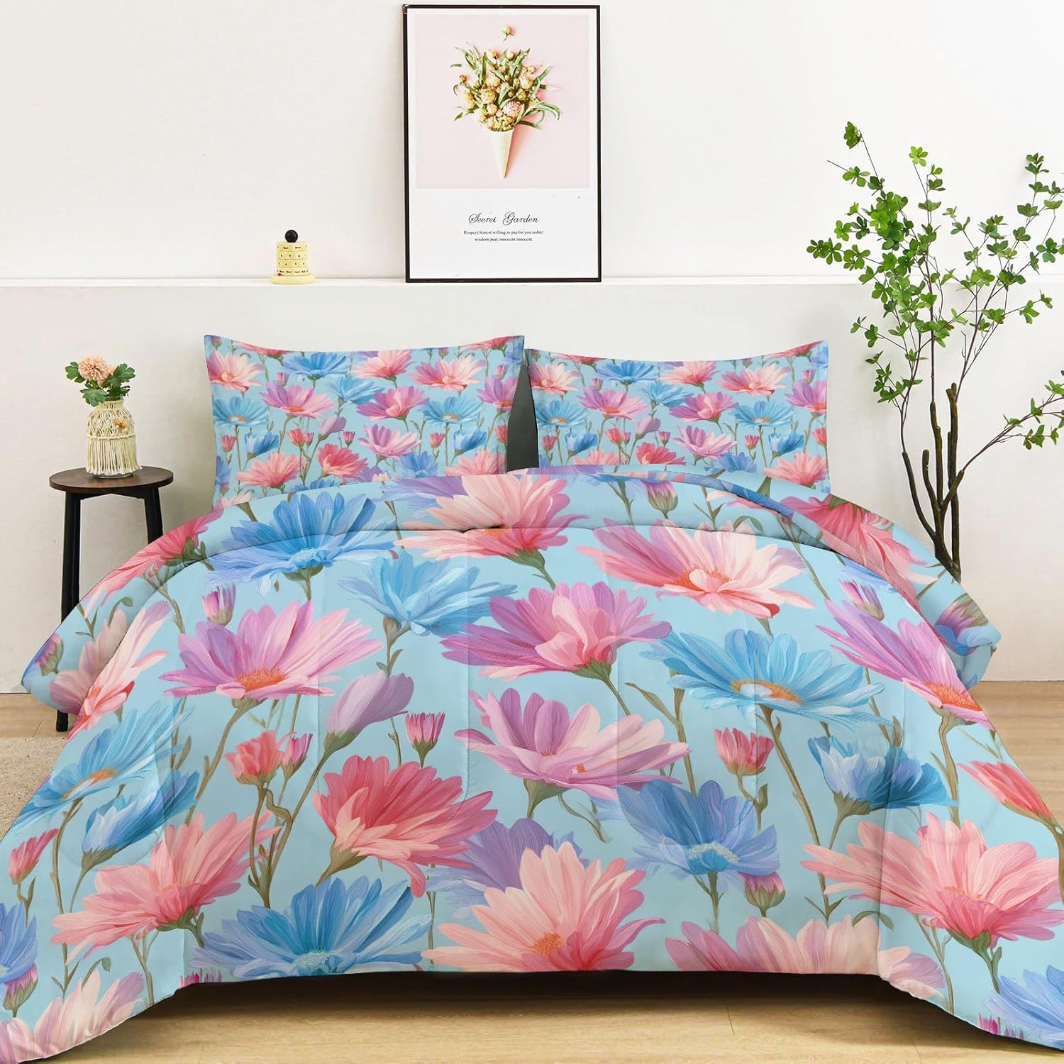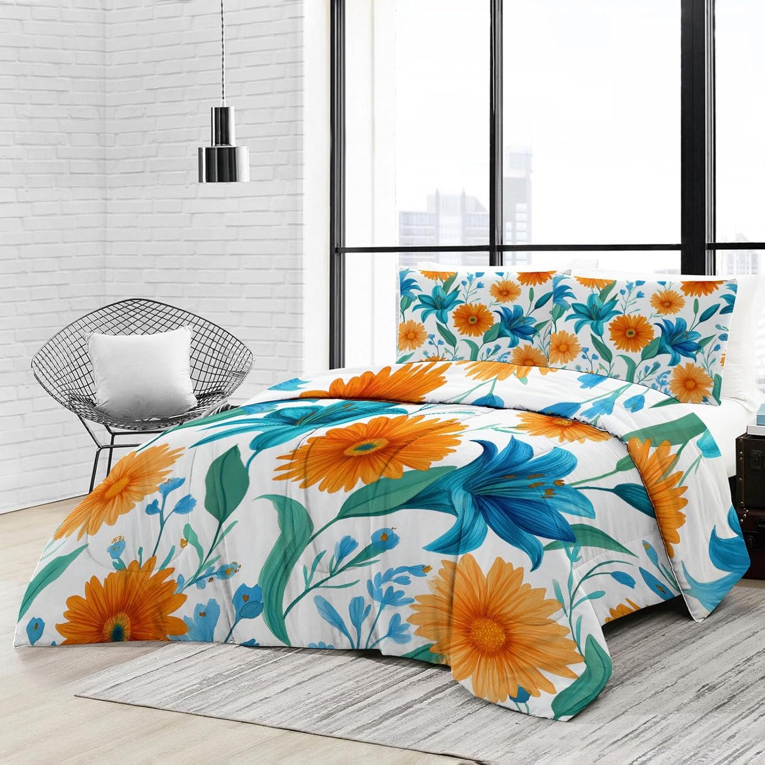 Transform Your Bedroom with Style and Comfort Key Features: Excellent Craftsmanship Hidden stitching design secures the filling in place to avoid shifting and clumping while presenting a original look of the comforter. Made of light brushed & pre-washed microfiber, with high tensile strength, comforter sets are durable for longtime use. Soft and Cozy Our comforter features breathable microfiber filling, offering lightweight fluffiness and exceptional comfort. The skin-friendly fabric provides softness, while the hydrophilic treatment ensures quick moisture absorption, fast drying, and temperature regulation for a cooler, drier, and warmer sleep experience. All-Season Comfort This comfortable not too thick, with a luxuriously soft and lightweight fill, it is truly a season bedding collection, it will keep you warm but not make you sweat. Enjoy the airy feel of the comforter in warmer weather or snuggle into its warmth when temperatures drop. Easy to Care Machine wash on a delicate cycle with cold water. Sun-dry or tumble dry on low heat. Do not bleach or iron. Due to vacuum packaging, the comforter may arrive compressed. Simply expose it to air and gently tap it, and it will fluff up nicely after a few hours. Perfect for Any Room This bedding set is the ideal addition to any bedroom. Whether you’re looking for a new comforter for your guest room, a gift for a loved one, or simply want to update your own space, this set is designed for comfort and style-making it a must-have for every home. Size 1 x King Comforter: 104" x 90" 2 x Pillow Sham: 20" x 36" After-Sales Service Your satisfaction is our priority! For any questions or concerns, our customer service team is available to assist you promptly.
