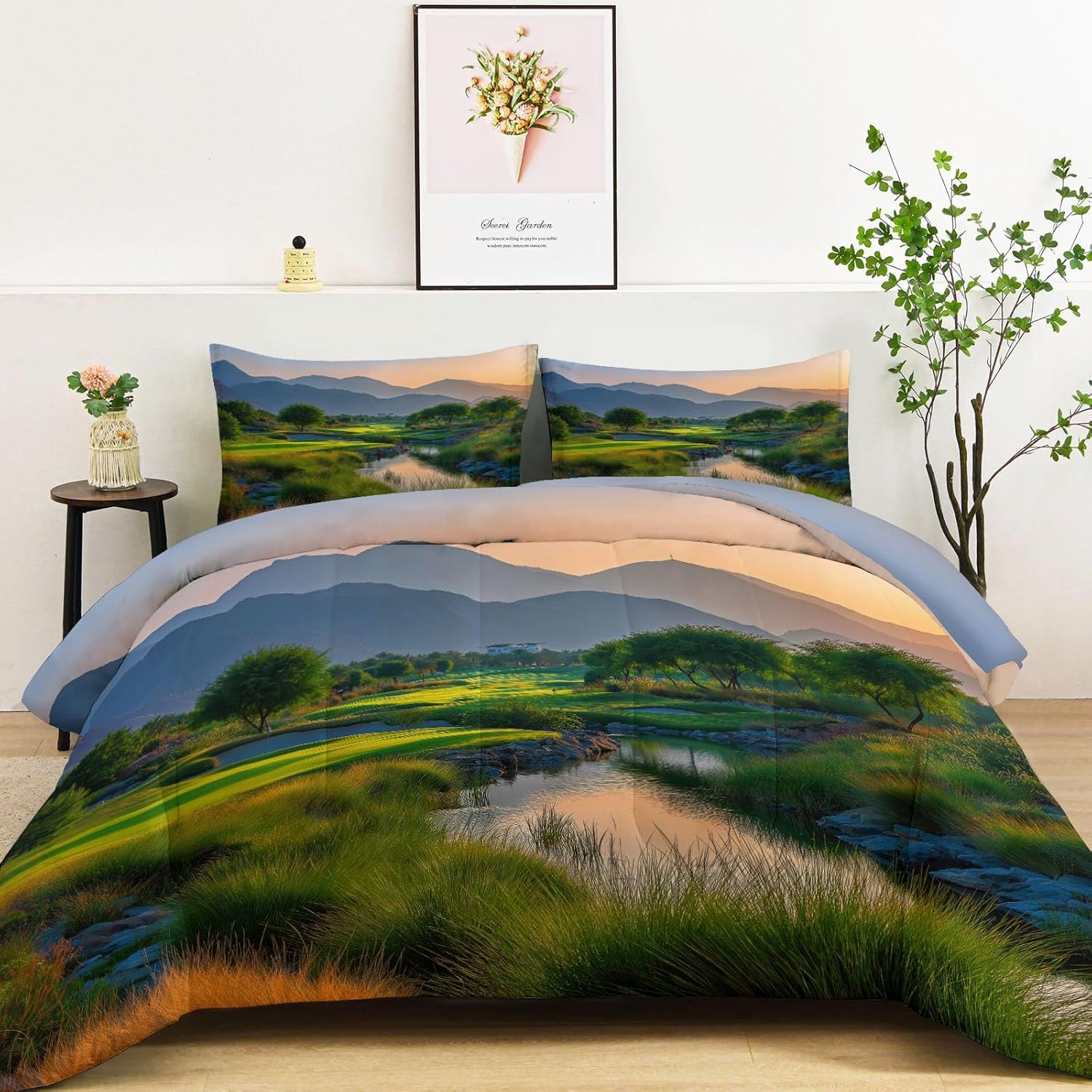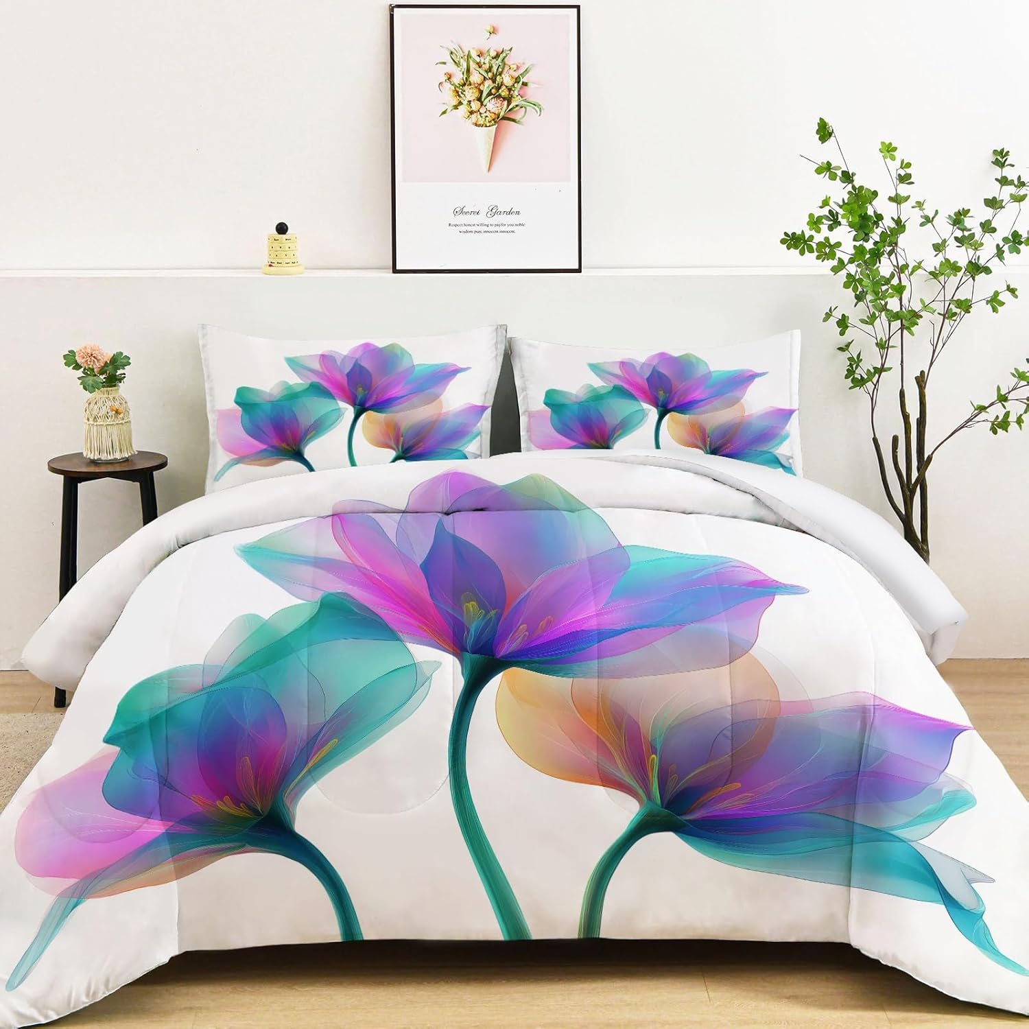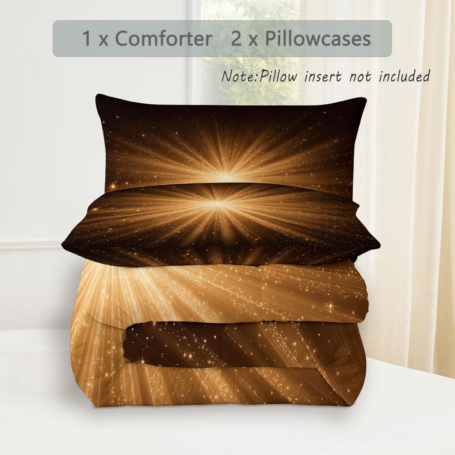 Transform Your Bedroom with Style and Comfort Key Features: Excellent Craftsmanship Hidden stitching design secures the filling in place to avoid shifting and clumping while presenting a original look of the comforter. Made of light brushed & pre-washed microfiber, with high tensile strength, comforter sets are durable for longtime use. Soft and Cozy Our comforter features breathable microfiber filling, offering lightweight fluffiness and exceptional comfort. The skin-friendly fabric provides softness, while the hydrophilic treatment ensures quick moisture absorption, fast drying, and temperature regulation for a cooler, drier, and warmer sleep experience. All-Season Comfort This comfortable not too thick, with a luxuriously soft and lightweight fill, it is truly a season bedding collection, it will keep you warm but not make you sweat. Enjoy the airy feel of the comforter in warmer weather or snuggle into its warmth when temperatures drop. Easy to Care Machine wash on a delicate cycle with cold water. Sun-dry or tumble dry on low heat. Do not bleach or iron. Due to vacuum packaging, the comforter may arrive compressed. Simply expose it to air and gently tap it, and it will fluff up nicely after a few hours. Perfect for Any Room This bedding set is the ideal addition to any bedroom. Whether you’re looking for a new comforter for your guest room, a gift for a loved one, or simply want to update your own space, this set is designed for comfort and style-making it a must-have for every home. Size 1 x King Comforter: 104" x 90" 2 x Pillow Sham: 20" x 36" After-Sales Service Your satisfaction is our priority! For any questions or concerns, our customer service team is available to assist you promptly.