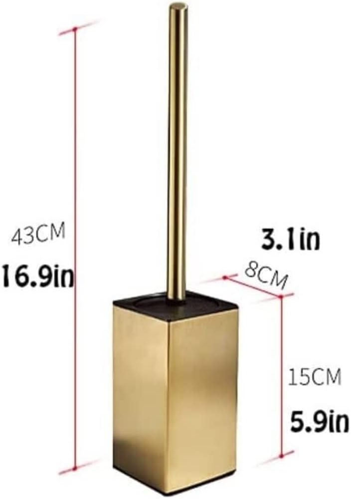 This toilet brush comes with its own stand, providing simple and discreet storage to keep floors clean and dry.Name: Floor-standing toilet brushMaterial: 304 stainless steelInstallation method: no punchingColor: goldenSurface technology: stainless steel wire drawingSize: 43cmx15cmx8cm/16.9inx5.9inx3.1inUse environment: bathroom, toiletInstallation method: floor-standingPackage Includes:1 X Toilet Brush1 X BaseThe ergonomic handle has a safe and comfortable grip, making your cleaning more effective; the toilet brush handle is well-made and has a long service life. Sewage will not enter the toilet brush handle without gaps.