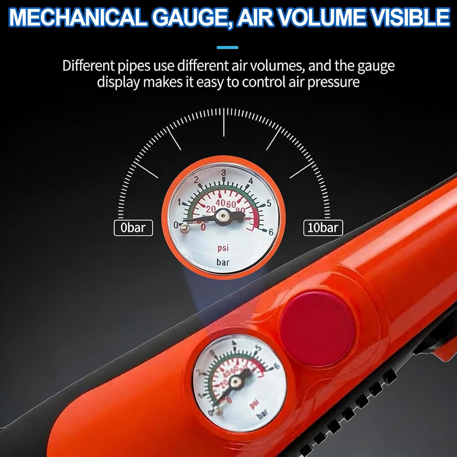 Product Description With the help of high-pressure air power, the drain jet can effectively remove hair, clothes, tea leaves, vegetables, accessories and garbage from the pipes. Rechargeable batteries are more efficient than traditional manual toilet plungers, different pipes use different amounts of gas, and a meter display makes it easy to control air pressure Specification: Name: Electric pipe dredging gun Color: orange Air pressure: 1-10bar Material: plastic, rubber, TPE Weight: 2.7kg Package: Pipe dredge x1