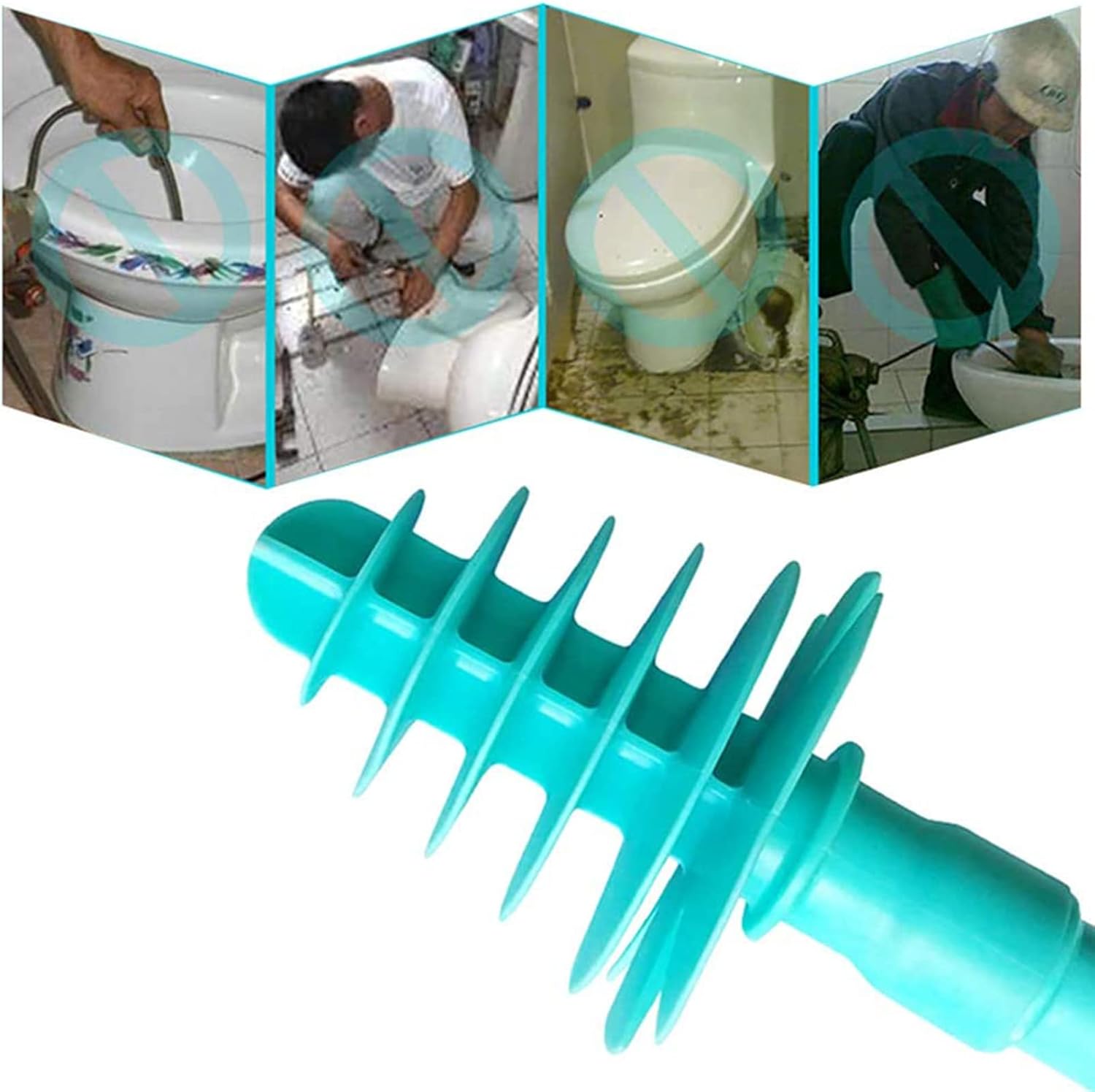 Features: 1. Piston-type propulsion, can be used for dredging and cleaning closestool. 2. Ergonomic handle is comfortable to hold and designed with a hole for convenient hanging. 3. The soft flexible head can be bent freely and won't scratch the closestool glaze. 4. Long handle allows it to reach the deeper clogged place and keep your hands clean. 5. Easy to operate and clean, help you to dredge toilet effortlessly. Description: Product Name: Toilet Plunger Material: Stainless Steel, ABS, TPR Weight: 350g Color: Blue, Black Size: Diameter 80mm/3.14inch Length 740mm/28.34inch Length of dredge head 260mm/10.23inch Package includes: 1* Toilet Plunger for Siphon-Type