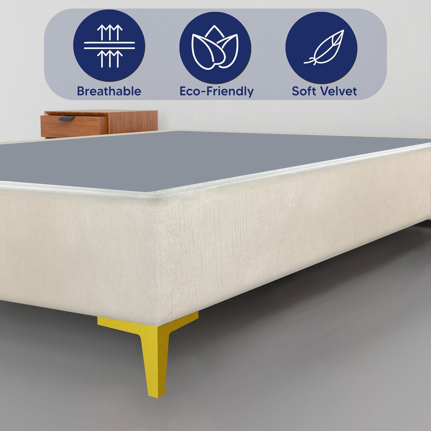 | Item Type Name | Greaton, 15-Inch Premium Velvet Material with Grain Pattern Wood Box Spring/Bed Frame, Durable, Stylish, Multi Colour Options and Comfortable Foundation with Golden Metal Legs, Twin, Beige |