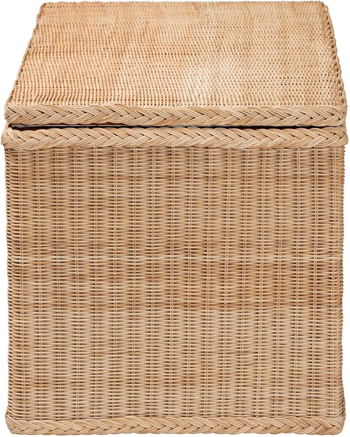 bali & pari Caden Braided Natural Rattan Chest with Lift-top Lid – Coastal Boho Style Storage Bench for Bedroom, Entryway, or Living Room Organization