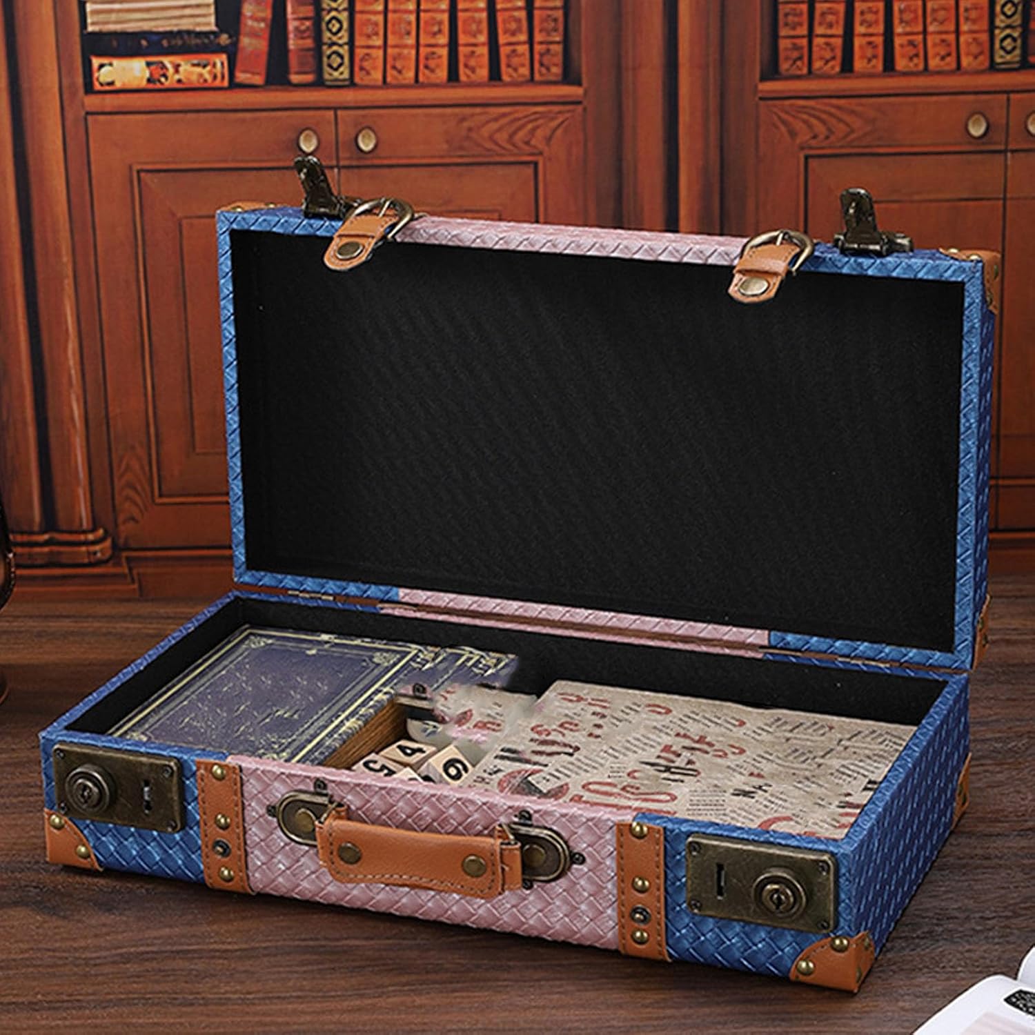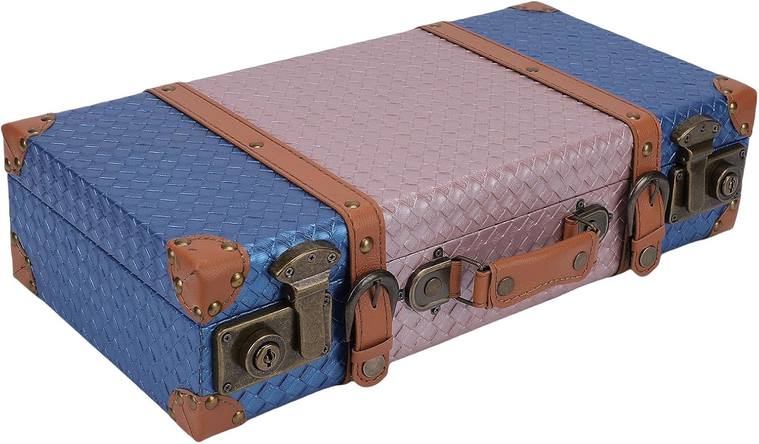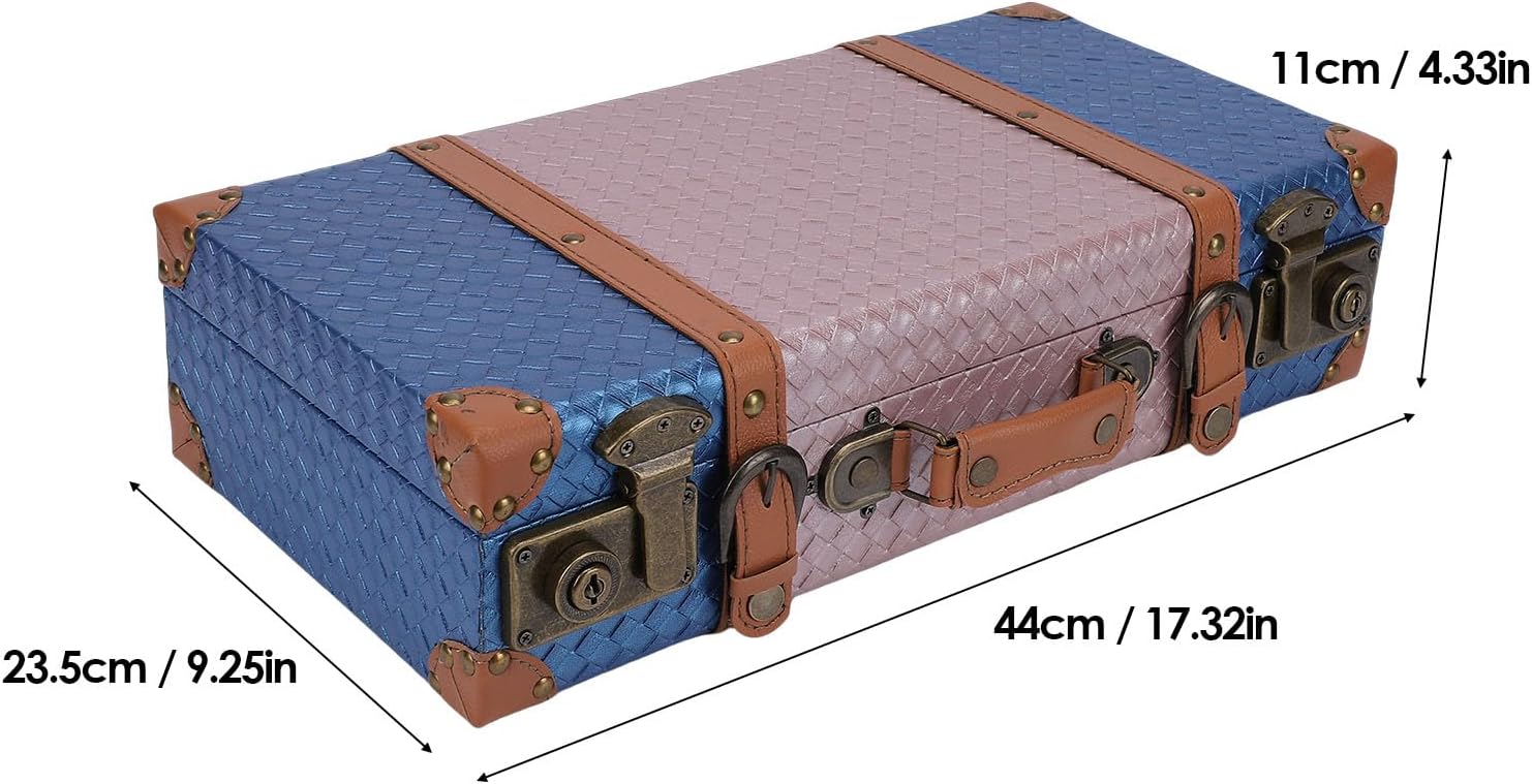 Spec: Item Type: Decorative Suitcase Material: PU Leather, Composite Wood Scene: Suitable for home storage, window decoration, film and television props, etc. Color: Blue and roseate Weight: Approx. 2284.00g / 80.57oz packing list: 1 x Decorative Suitcase