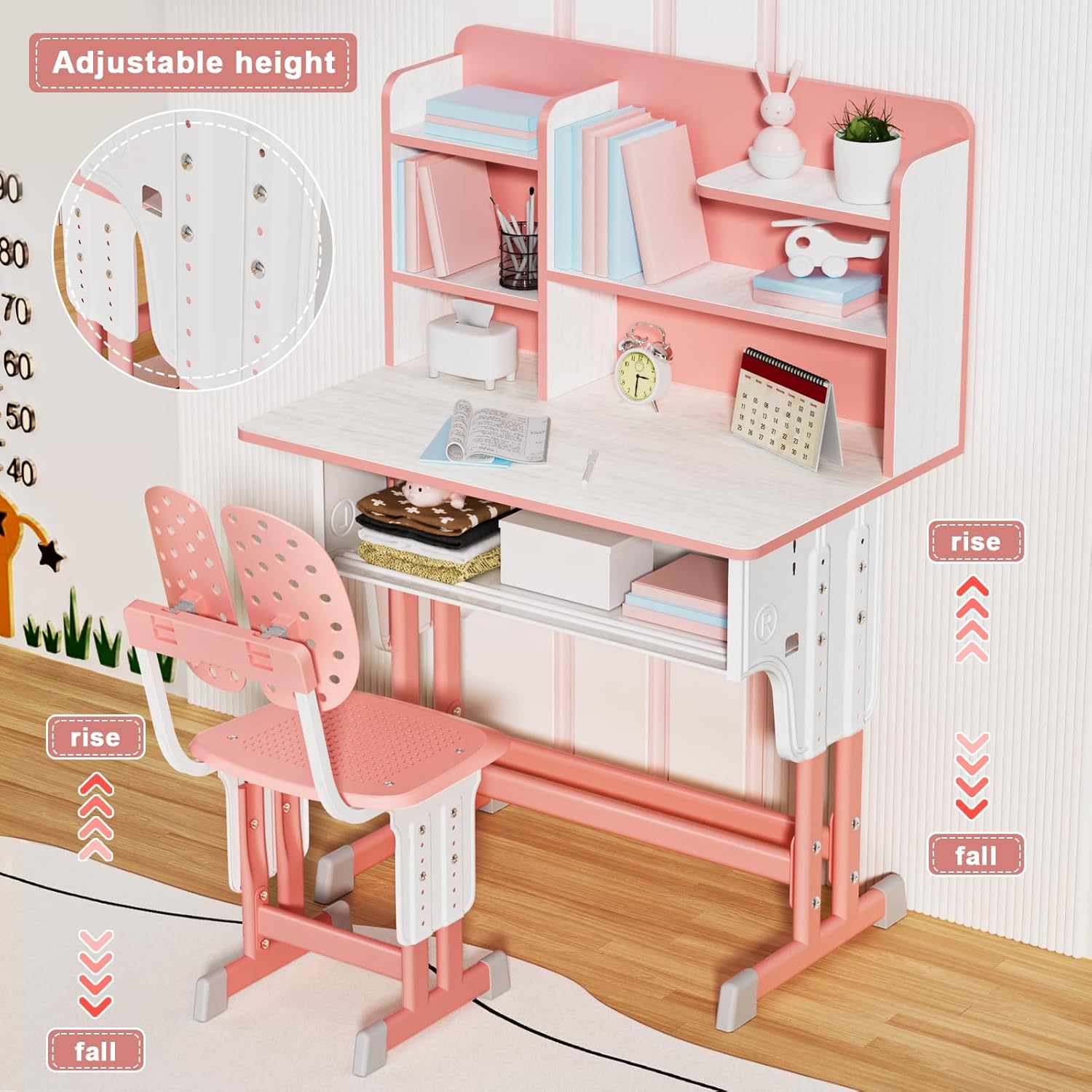 Description:Item Name: Desk Chair SetMaterial: WoodAges: 7-12 Years OldFeatures: Adjustable Height, Storage Drawer, Backpack HooksSize Details:Desk: L: 80cm/31.5", W: 50cm/19.69", H: 121cm/47.64" (Approx.)Desk Height: 106cm-121cm/41.76"-47.67" (Approx.)Chair Height: 37cm-43cm/14.58"-16.94" (Approx.)Notes:Due to the light and screen setting difference, the item's color may be slightly different from the pictures.Please allow slight dimension difference due to different manual measurement.Package Includes:1 x Desk1 x Chair