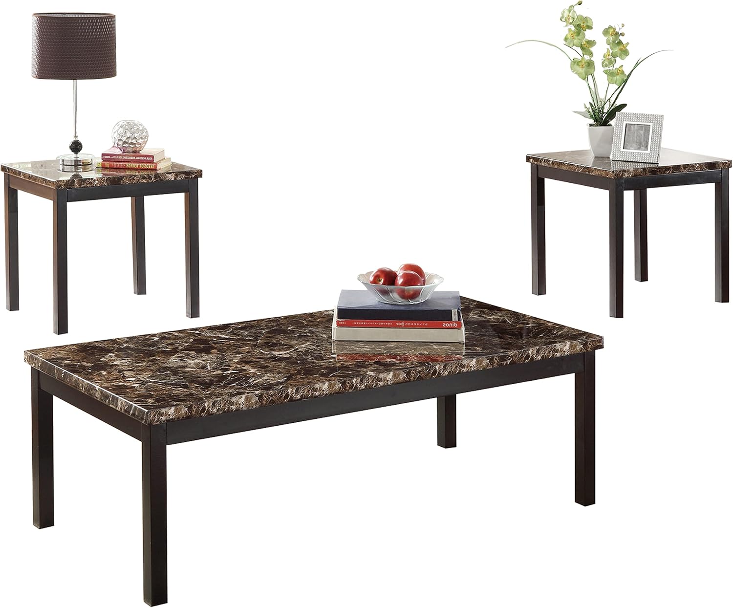 Lexicon Malaya 3-Piece Set Faux Marble Occasional Table, Brown