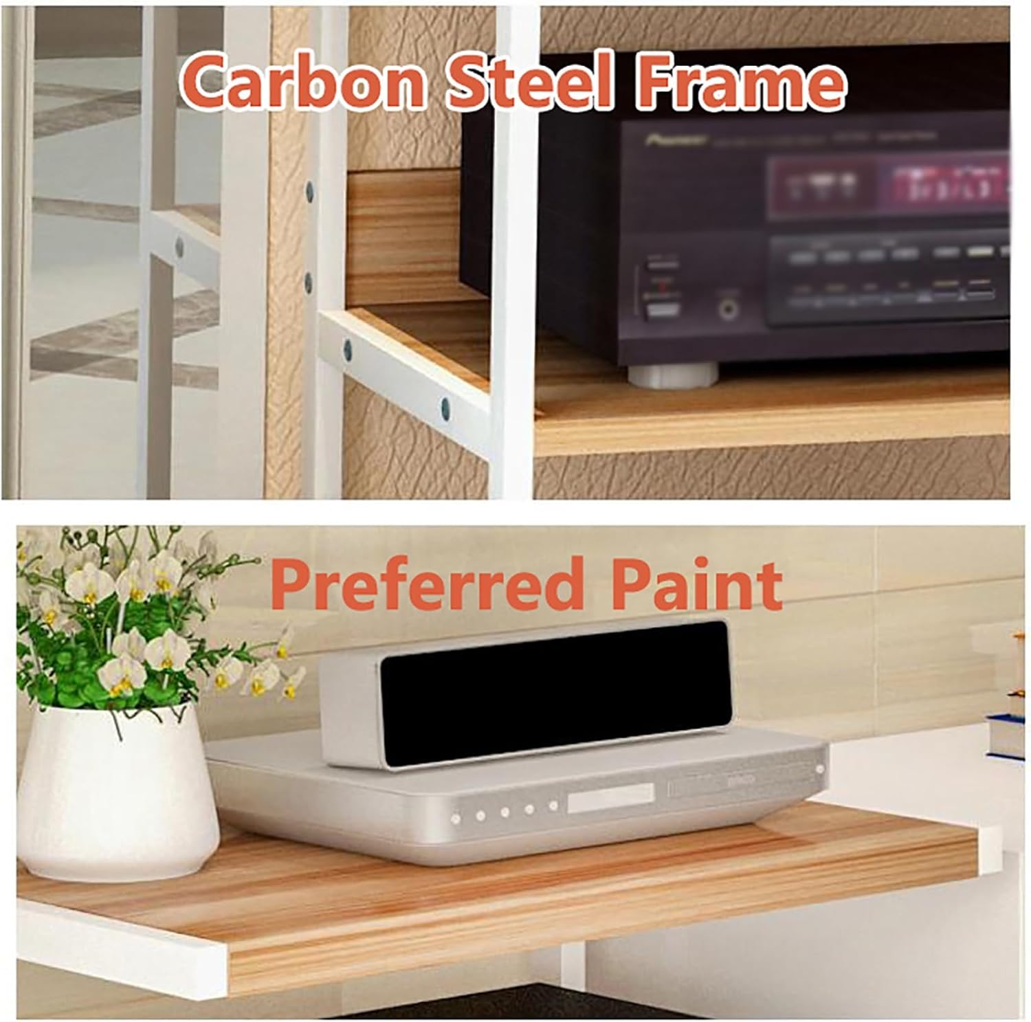 Transform your entertainment setup with our high-quality AV Media Stand, designed for those who value style and functionality.- Crafted from premium E1-grade eco-friendly materials, this Corner TV Stand ensures a safe, odor-free environment while providing a comfortable surface for your devices.- The Rack Audio Tower is supported by a durable, powder-coated steel frame, offering a sturdy structure that resists wear and tear for long-lasting use.- Built with a reinforced steel frame, this media console ensures stability and durability, making it the perfect choice for holding your audio equipment, gaming consoles, and other media essentials.- With its large storage capacity, this entertainment stand features multiple spacious layers, allowing you to organize your devices and accessories while maximizing space in your living room.- This versatile media cabinet can serve as a small entertainment center media shelf, gaming shelves, or a small TV stand for your living area.Its multifunctional design fits seamlessly into any space, making it the ideal choice for a stylish home entertainment setup. Whether placed in a corner or center stage, this corner rack enhances the look and functionality of your living area.