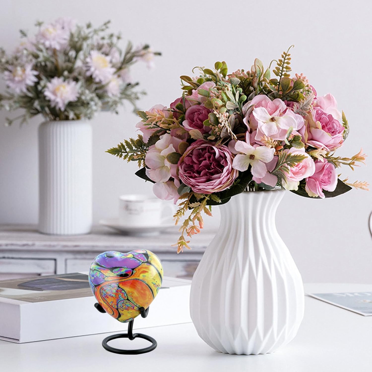 Affordable Alloy Heart Keepsake Modern Print Cremation Urn for Ashes. Cost-Effective Unique Way To Keep The Remains Of The Loved Ones.Threaded lid allows secure closure.Free Velvet protective bag. Felt-lined base. Dimensions: 2.9" H x 3" W | Holds 3 Cubic Inches. People may keep the ashes of their deceased friends, relatives, pets, or anyone close to their hearts. And they can carry it with them for eternity. Combination of tradition and modernity - The tradition of preserving the ashes of your loved ones or close ones is an age-old practice. This urn adds a touch of modernity to it by making it such a delicate and durable piece for storing such a precious thing. The designs, patterns, and radiance is a work of futuristic approach and artistic thinking. Artistic details - Each urn is an artistically detailed, true piece of art that will preserve the memories of your loved ones for the ages.