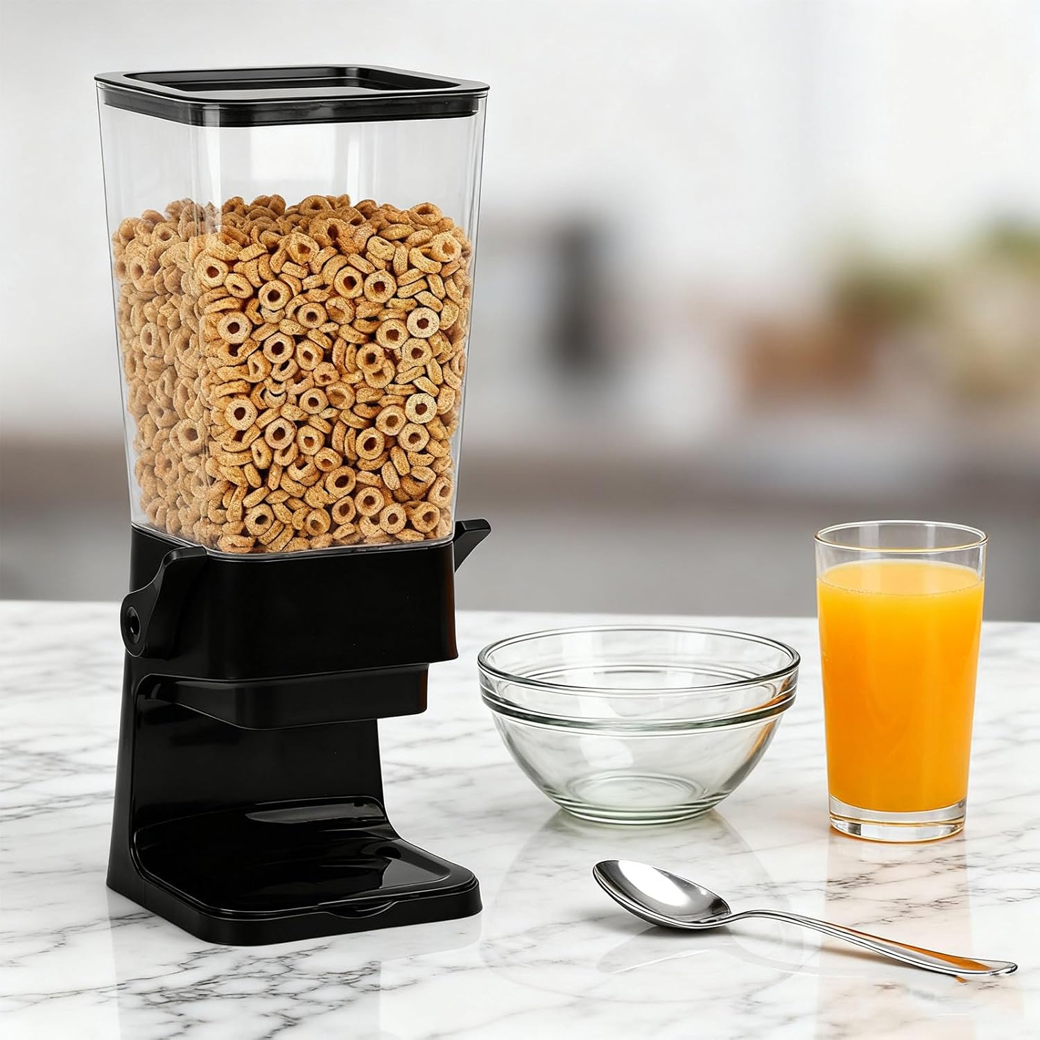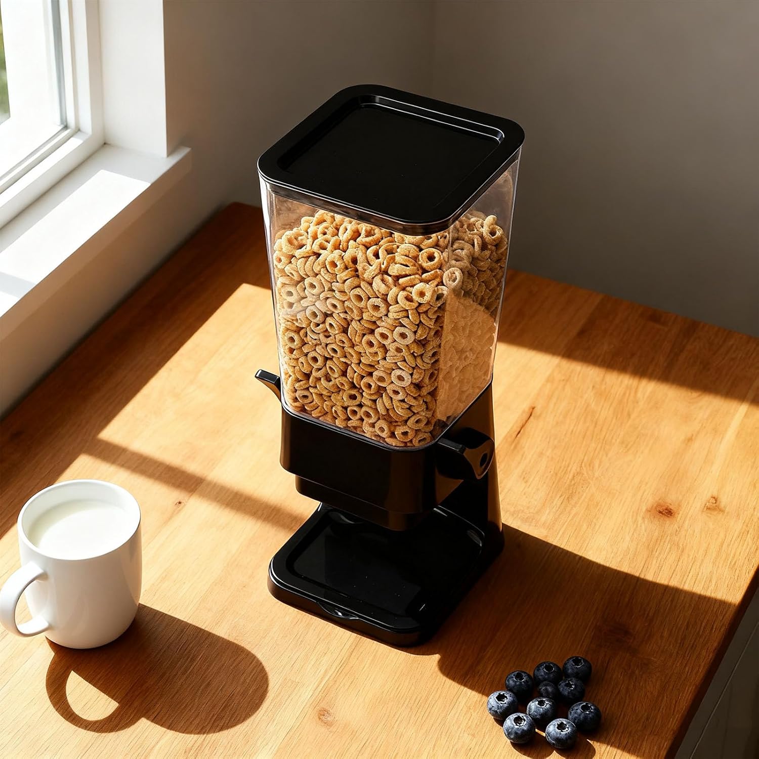 Spec: Item Type: Cereal Dispenser Material: PP Capacity: 5.5L Weight: Approx. 1176.00g / 41.48oz Package List: 1 x Cereal Dispenser(Total 8 Accessories)
