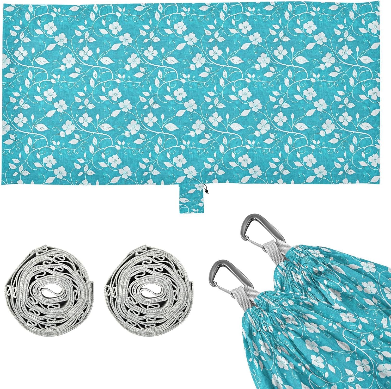 Large Size Width: 114in/290cm ×54.33in/138cm. Although Swing Hammock is used as a hammock, the space is large enough to accommodatwo peoplo rest together. It can bear a load of 330LB/150KG.Material Description: Polyester. Portable Hammock fabric is made of high-strength and breathable 210T polyester taffeta, which has excellent wear resistance, tear resistance and breathability, ensuring comfort and safety. The climbing buckle is made of aluminum alloy, and three belt is made of high-density 600D imitation nylon webbing, which is sturdy with strong load-bearing capacity.Design: This hammock's webbing is equipped with multiple adjustable rings, making it convenient for users to adjust the height and position of the Swing Hammock according to the actual situation. There are also hanging pockets along the edge of the hammock, which can be used to store personal items.Applicable Scenarios: Backyard Hammock is suitable for various outdoor activities, such as camping, traveling, hiking, etc.Warm Reminder: When cleaning this Rope Hammock, remember to removhe climbing at both ends. If you have any questions, please contact our customer service by email and we will answer your doubts in a timely manner.