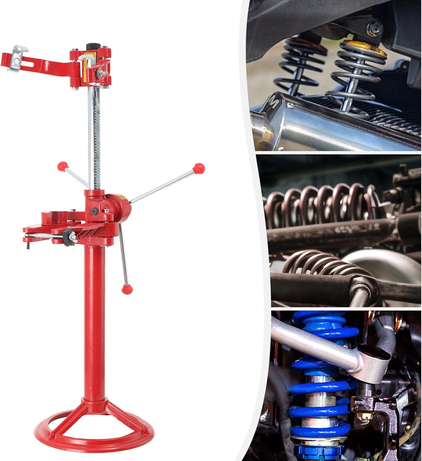 • Application: Designed to disassemble/assemble operations of car spring shock and can compresses and pauses the spring in any position. Removes the toughest strut spring for replacement and helps to repair strut components.