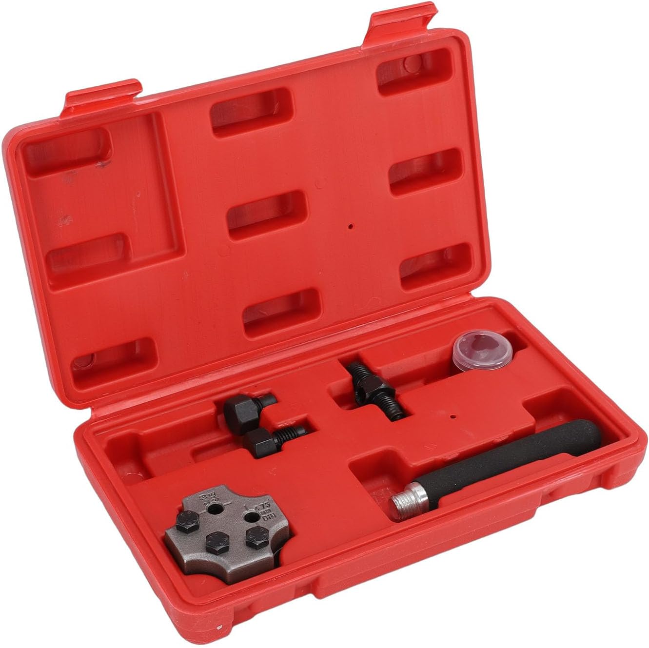 [Effortless 45 Degree Sae s] This professional-grade brake line flaring tool kit allows you to create perfect 45-degree sae s on 3/16 inch tubing with minimal effort. designed for efficiency, it saves you up to 50% time compared to traditional methods, making it ideal for quick brake line repairs and installations. the precision-engineered dies ensure consistent, leak-proof s every time. [Confine Space Friendly Design] Engineered for both in-vehicle and under-vehicle use, this compact tool excels in tight working spaces where conventional tools fail. its innovative design allows mechanics to produce flawless double s even in the most challenging positions, revolutionizing your automotive repair experience. [Versatile Bench Vise Compatibility] Featuring a removable die system, this kit offers unmatched flexibility by working seamlessly with standard bench vises. this dual functionality provides professionals with multiple working options, whether in the shop or on the road, ensuring you're always equipped for any repair scenario. [Professional Automotive Repair Solution] Specifically crafted for vehicle plumbing systems, this tool delivers precision for secure brake line connections. its superior performance enhances your braking system's reliability, making it the go-to choice for professional mechanics and serious diy enthusiasts. [Industrial-strength Construction] Built to withstand daily professional use, this kit combines high-grade steel and aircraft aluminum alloy components for exceptional durability. the rugged construction ensures years of reliable service, while the ergonomic design reduces user fatigue during extended repair sessions. Spec: Item Type: Brake Line Flaring Tool Kit Material: Steel, Aluminium Alloy Package List: 2 x Brake Pipe Flaring Tools 4 x Accessories 1 x Storage Box