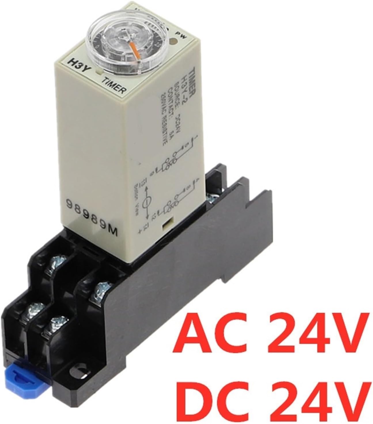 RelaysPower-on Delay Rotary Knob DPDT 1S/5S/10S/30S/60S/3M/5M/10M/30M Timer Time Relay AC/DC 24V H3Y-2 With Base Socket PYF08AIf you need other specifications,Please choose " other specifications", leave a message. We have: Model: H3Y-2 Time: 1S 3S 5S 10S 30S 60S 3M 5M 10M 30M 60M Voltage: DC6V DC12V DC24V DC36V AC6V AC12V AC24V AC36V AC110V AC127V AC220V AC380V Model: H3Y-2 Material:Metal, Aluminum, Plastic Supply voltage: AC 24V DC 24V Rated time Range: 0~30 Minute Pins: 8 Work mode: electricity delay Package included 1 x Delay Timer Time Relay 1 x H3Y-2 Relay Base