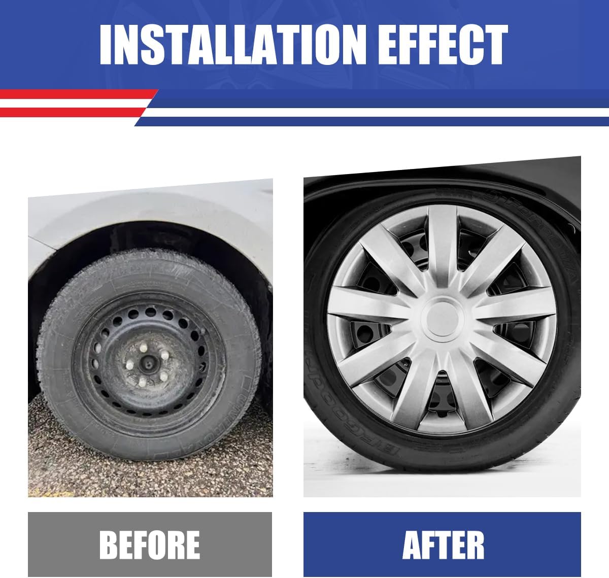 • ✅ Easy To Install - With a quick and easy snap-on replacement, our hubcaps are easy to install. Just place them on the tire and snap them into place, Locate the curve on the retention ring and match to the tire air valve to install