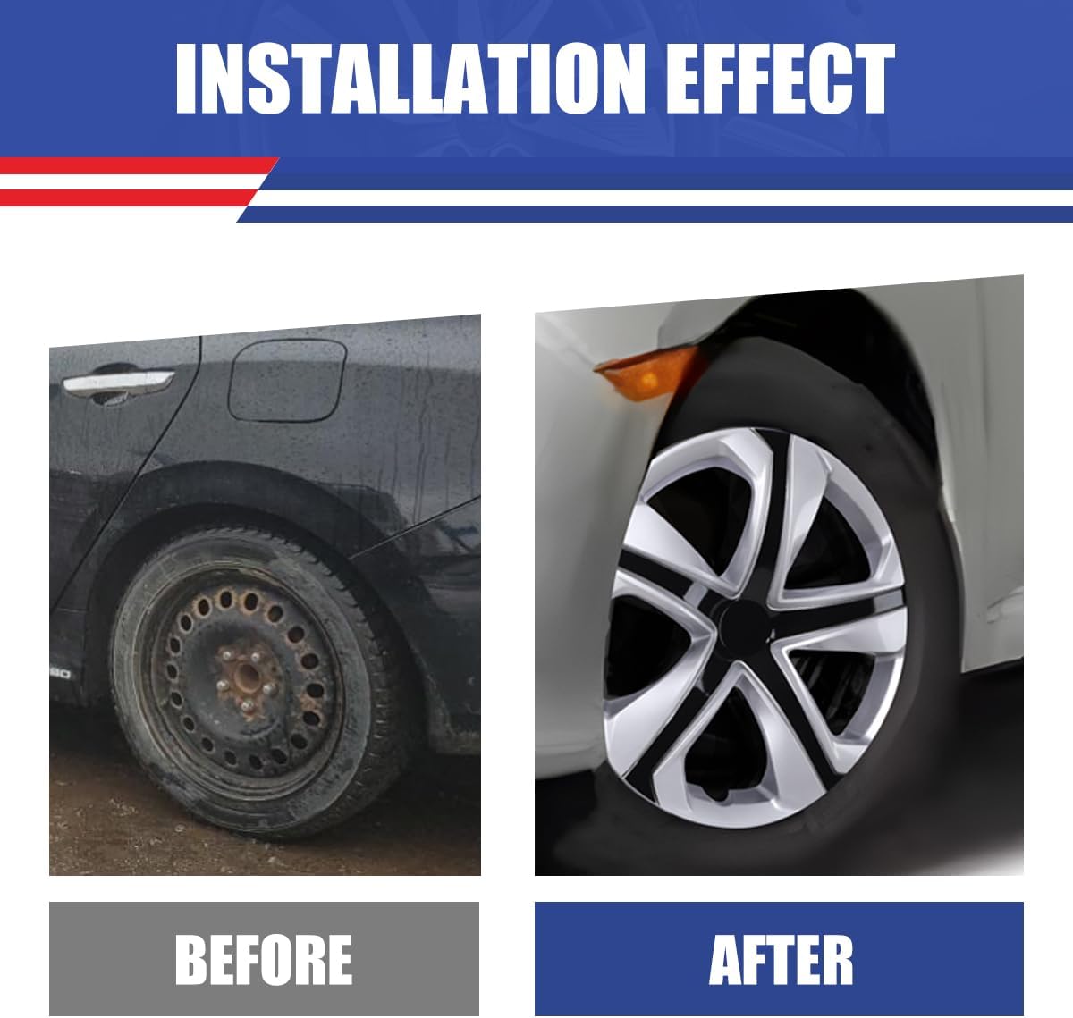 🌈🌈ABOUT CPW BRAND: 🌌🌌CPW is a professional high-end company on automotive parts enterprise integrating R&D, production, sales and service. Equipped with professional product research and development center, international product inspection center and high-quality industrial personnel. 🌟🌟CPW is dedicated to providing one of the best performance automotive accessories including headlights, tail lights, fog lights, grill upper lights, off road front & rear bumper, fender flares, inner fender liners, car refrigerator etc. 💯Vehicle Perfect Compatibility: ✔️ Fit For 2016 Honda Civic Sedan 16" Wheel ✔️ Fit For 2017 Honda Civic Sedan 16" Wheel ✔️ Fit For 2018 Honda Civic Sedan 16" Wheel ✔️ Fit For 2019 Honda Civic Sedan 16" Wheel ✔️ Fit For 2020 Honda Civic Sedan 16" Wheel ✔️ Fit For 2021 Honda Civic Sedan 16" Wheel ✔️ Fit For 2022 Honda Civic Sedan 16" Wheel ✔️ Fit For 2023 Honda Civic Sedan 16" Wheel ✔️ Fit For 2024 Honda Civic Sedan 16" Wheel ⚠️Note: ✔️Only Fit Steel Wheels! ❌Not for Aluminium Alloy Hubs or other size wheels! ⭐Specification: 🔹Quantity: Set of 4 🔹Material: ABS & PC 🔹Color Finish: Silver Lacquer & Black Lacquer 🔹Replaces Original (OE) Part #: ▪️Steel Wheel: 42700-TBA-A12 ▪️Wheel Cover: 44733-TBA-A14 🛠️Easy Installation: ▪️【Snap-On】 Just place them on the tire and snap them into place, Locate the curve on the retention ring and match to the tire air valve to install. ▪️【Video Guidance】 If you could not install them perfectly, we could provide you with video of installation, Just follow the video operation is okay. 🎁Package Included: 1 Set of Hubcaps (4pc) 🔔Warm Tip: We provide 24 hours technical support for all our customers. If there are any problems within 12 months of purchased, please tell us in time, we would try our best to help you to solve the problems of purchase, installation and after-sales for you.