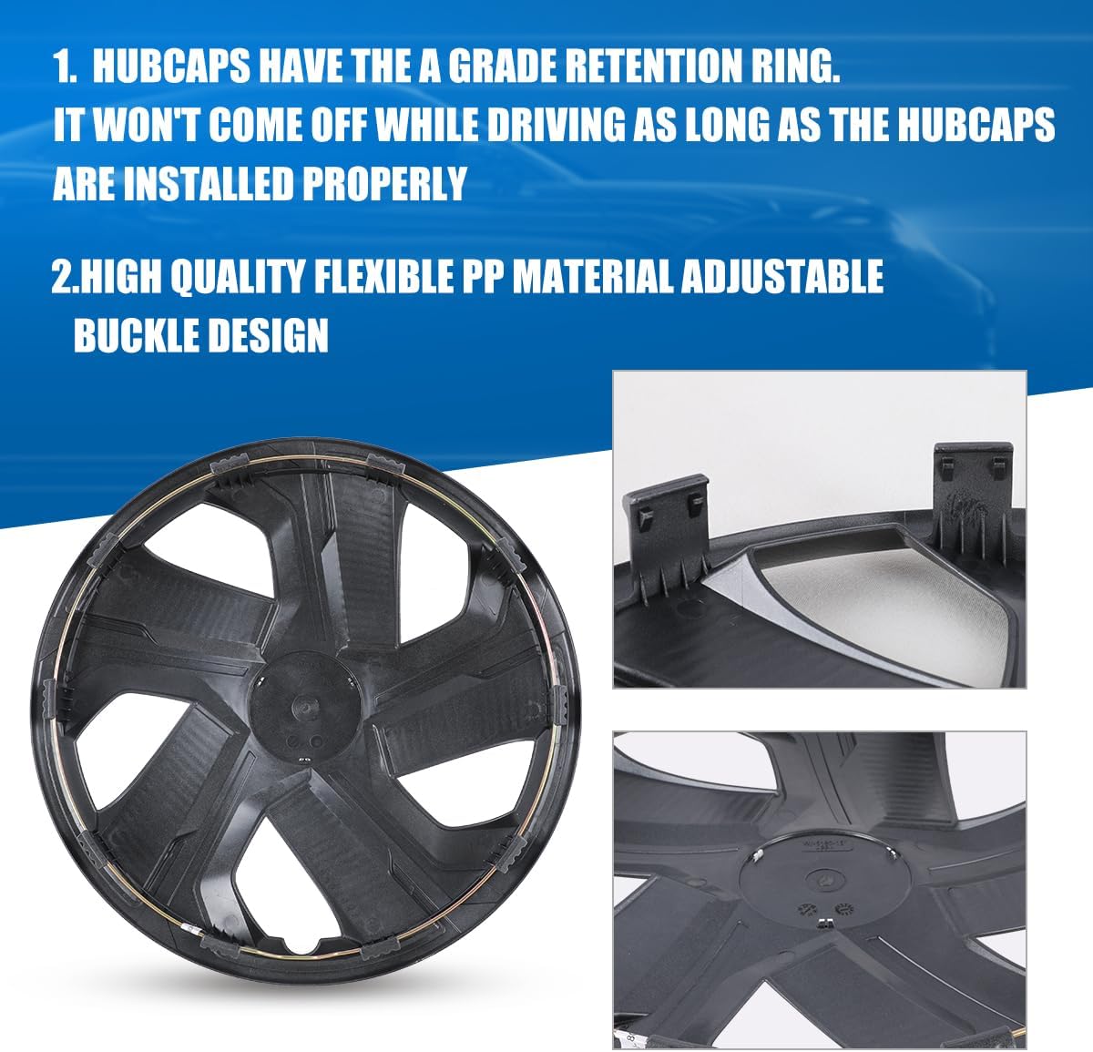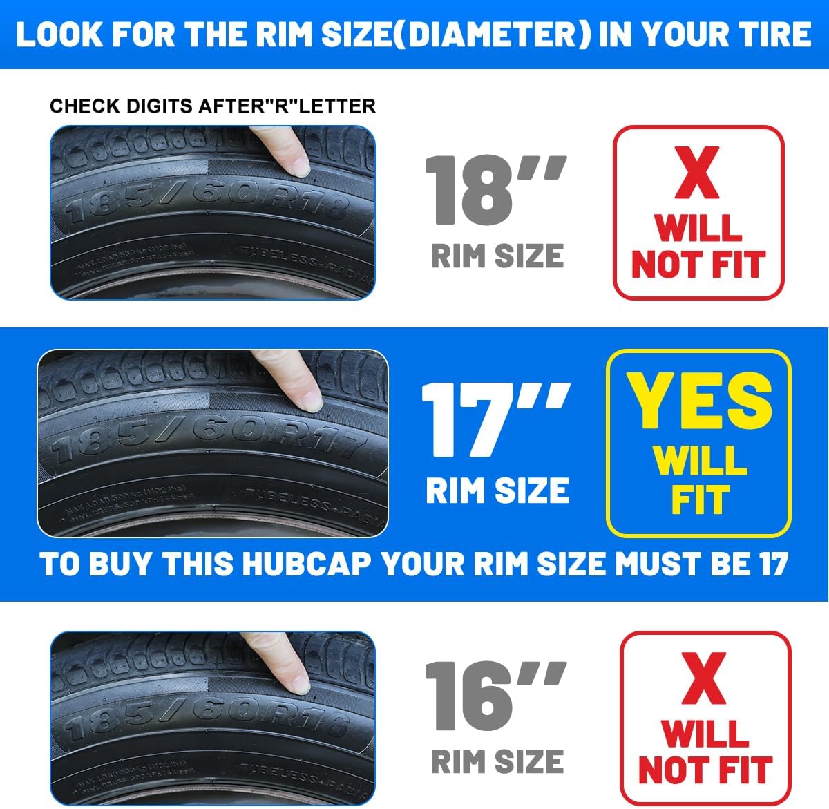 ❌NOT SUITABLE FOR THE FOLLOWING MODELS:Not fit for Chevy Equinox All Models Not fit for Toyota Sienna 17 Inch Models Not fit for Volkswagen Golf 17 Inch Models Not fit for 2010-2011 Fusion Steel Wheel Not fit for 2010-2011 Mercury Milan Steel Wheel Not fit for 2008-2012 Chevy Malibu Steel Wheel Not fit for 2007-2010 Pontiac G6 Steel Wheel Not fit for 2023-2025 Toyota Prius/Prius Prime Alloy Wheel SPECIFICATIONType: Hubcaps Number in Pack: 4 Material: PP Color: Black & Silver Lacquer Compatible Wheel Diameter: 17 in Installation Type: Snap-On Model: Universal Hubcap for Steel Wheels FEATURE100 % Brand new in box. Unused, unopened, undamaged item in its original packaging. Hubcaps have the a grade retention ring.it won't come off while driving as long as the hubcapsare installed properly. High quality flexible abs material adjustablebuckle design. NOTEDesign for 17" iron hubs NOT for aluminum alloy hubs. Please know that and check your wheel before purchase to ensure fitment. PACKAGE INCLUDESOne set of 4 Hub caps and 4 retention rings