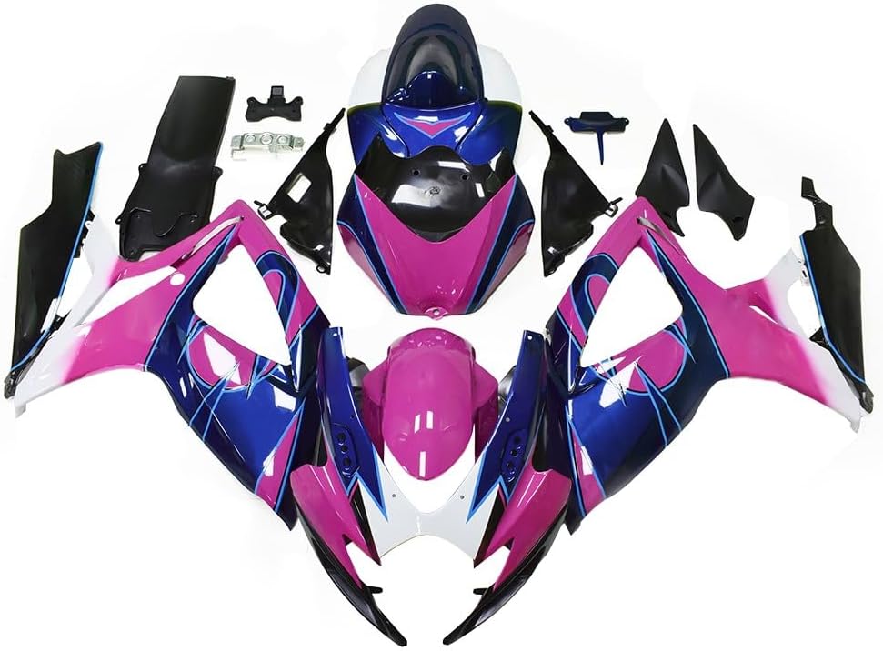 Fit for: SUZUKI 2006-2007 GSXR600 GSXR750 K6Material: High quality, flexible and durable ABS plastics.Color: As pictures shown.Package includes: Fairing parts: Front fairing + left & right side fairings front fender + tail fairing+ black trim parts;Trim parts: Unpainted plastic black;Note:1. Installation instructions are not included;2. The paint is not mixed by paint code, so we could not make sure the color of fairings 100% matches your original / OEM ones. Installation:1. Professional instalation highly recommended;2. Only compatible with original motorcycle, not modified ones;3. Holes pre-drilled, fits just like OEM fairings.