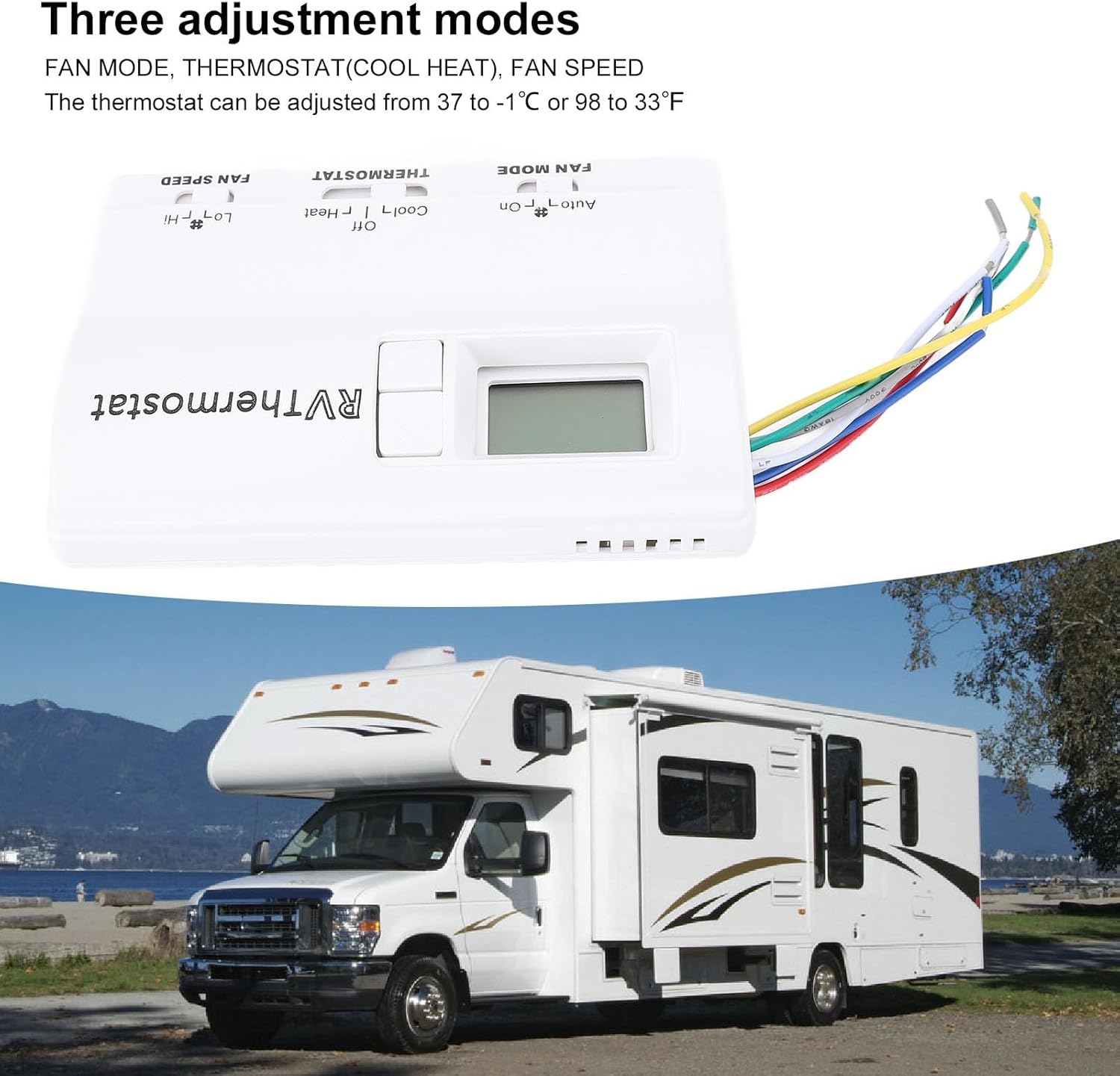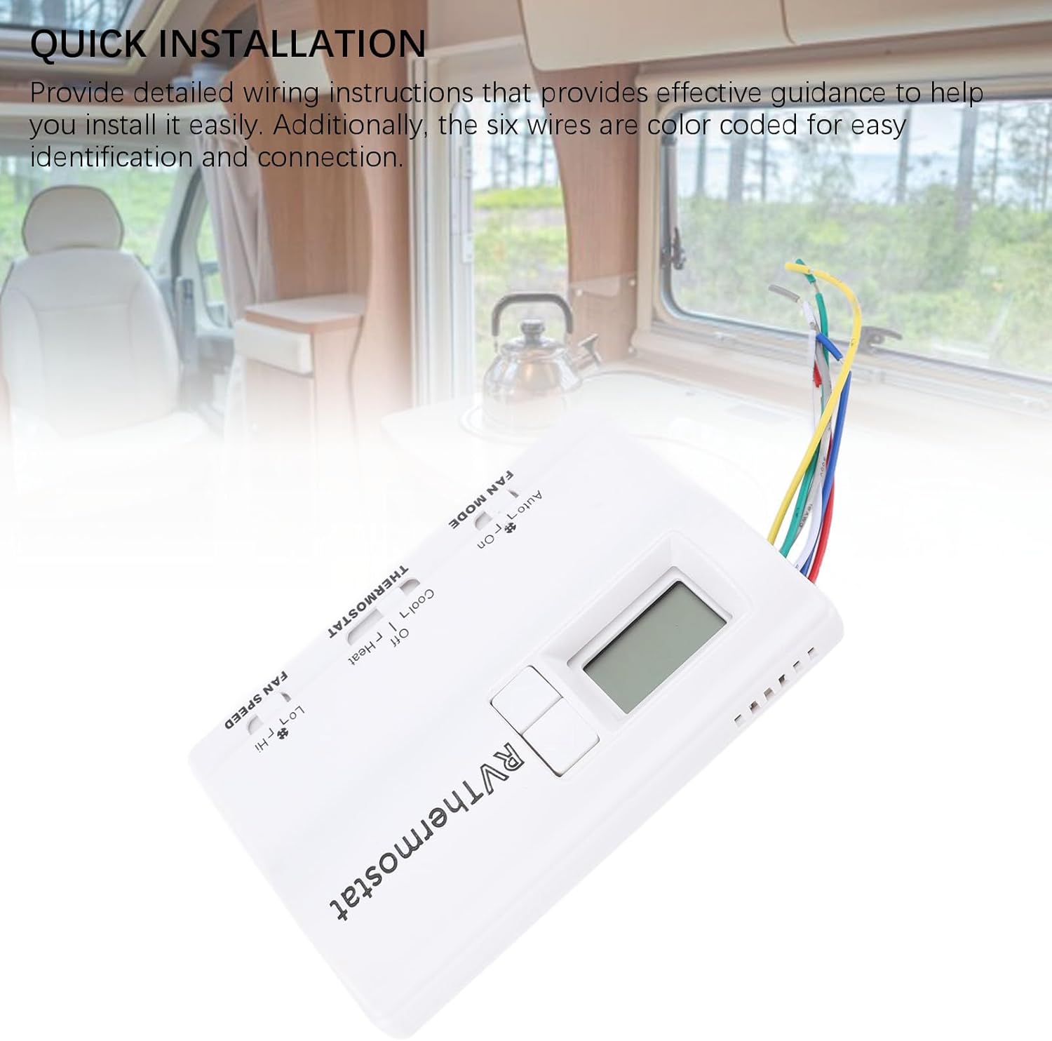 [User-friendly Interface] Featuring a crisp, clear digital display with intuitive controls, this thermostat makes temperature management effortless. the bright screen ensures easy readability day or night, while the straightforward operation requires no technical expertise. with just a few button presses, you can adjust settings to create your ideal indoor environment, making it for both tech-savvy users and beginners. [Easy Installation] The package includes detailed, step-by-step wiring instructions to you through a smooth installation process. six color-coded wires enable quick and accurate connections, eliminating guesswork. even if you're not an expert, you'll find the installation process straightforward, thanks to the clear documentation and thoughtful design that prioritizes user convenience. [Versatile Control Modes] Take complete command of your rv's climate with three distinct adjustment modes: fan mode for air circulation, thermostat mode for precise temperature regulation (cool/heat), and fan speed control for customized airflow. this multi-functional approach gives you unparalleled flexibility to create the atmosphere tailored to your specific needs and preferences. Spec: Item Type: RV Thermostat Material: ABS OE: 83303862 Compatibility: Replacement for T-Stat wall mounted heating cooling thermostats. Applicable to 8330-336, 8330-337, 8330-338, 8330-339, 8330-368, 8330-386 Package List: 1 x Thermostat 1 x Manual Note: Please double check the part number of your item, matching information is for reference only.