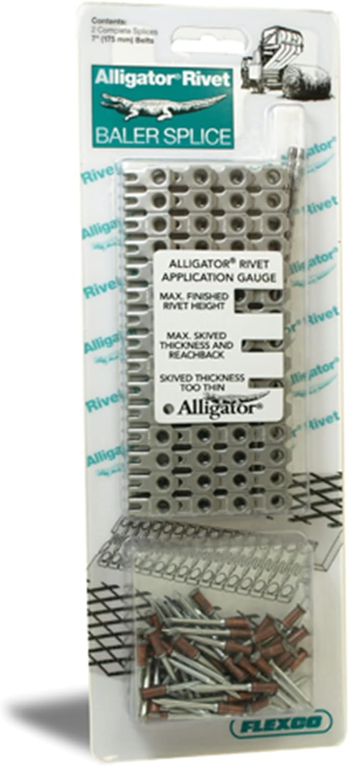 Fasten large and wide items with high tension without fear thanks to the Apache Stainless Steel Alligator 7 Inch Rivet Belt Fastener (4 Pack). This set provides you with 4 rivet fasteners, including all the pins and splices. Each piece is rendered from thick stainless steel, ensuring the fasteners are suitable for outdoor use and high-impact environments. A self-settling design makes sure installing each fastener is quick, easy, and won't damage the item being joined. The alligator rivet fasteners are ideal for a variety of agricultural and industrial uses. Whether you're looking couple large hay bales or mend belts, this set is here to make sure your work goes quickly and without accidents. Make sure to pick up several so you're never without a rivet and belt fastener on hand.