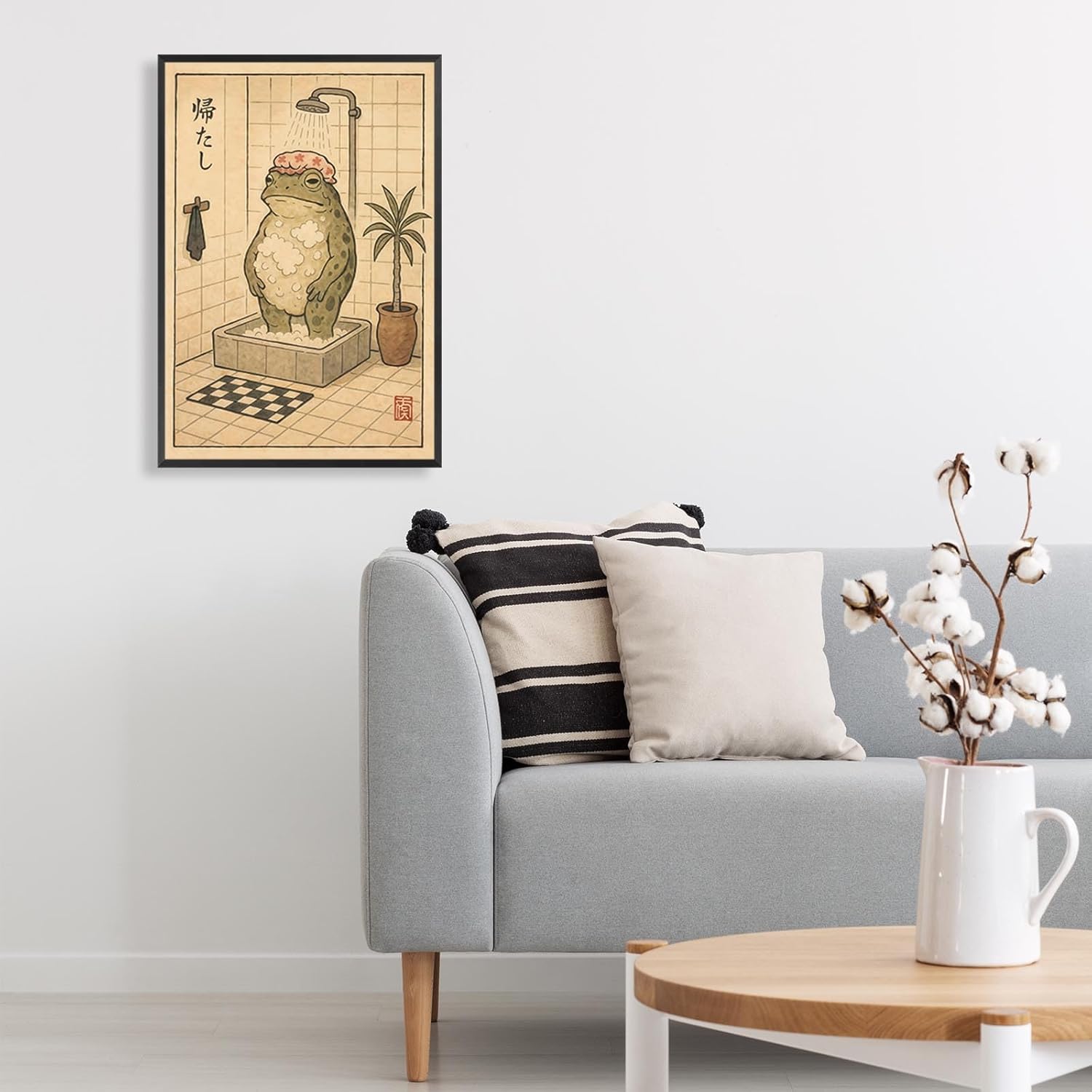 Elevate your space with our Vintage Frog Bathroom Canvas Wall Art—a delightful fusion of Japanese-inspired design, cute animal motifs, and whimsical humor. Featuring a charming green frog mid-shower, this unique bathroom wall art adds a refreshing splash of joy to toilets, bathrooms, dorms, or apartments. Crafted as a high-quality canvas print, it resists moisture and fading, making it perfect for humid environments. The minimalist composition and soft color palette create an aesthetic wall art piece that complements modern, rustic, or eclectic interiors. Whether you're looking for funny bathroom wall art or a serene Japanese poster vibe, this frog poster delivers both style and personality. Bring nature, nostalgia, and a smile into your home with this enchanting frog wall art today!