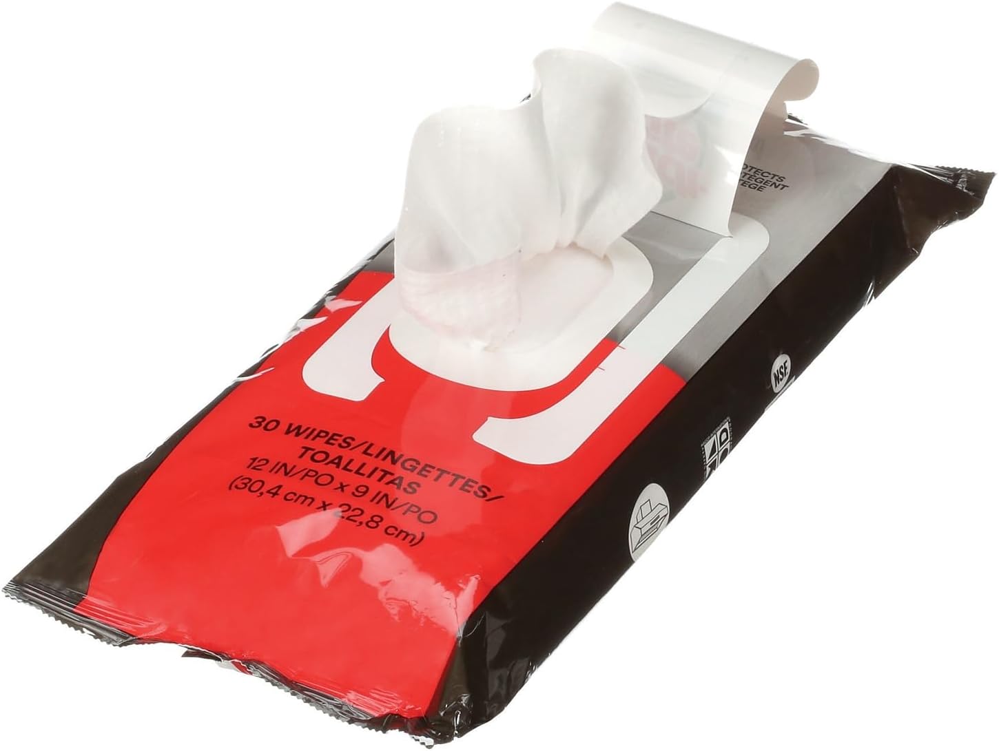 The Scotch-Brite Stainless Steel Hood Degreaser Wipes with Scotchgard Protector are ready-to-use, pre-moistened disposable wipes with a cleaner, degreaser and Scotchgard Protector. The wipes are designed to be simple and convenient to clean, degrease, and protect stainless steel surfaces and eliminate the risk of overspray. It is ideal for cleaning non-food contact stainless steel surfaces in kitchen areas. Also effective on mild steel and anodized aluminum. Degrease and protect today for faster cleaning tomorrow. Cleaning and degreasing your kitchen hoods and other stainless-steel surfaces is a nasty, but necessary, job for safety and health. Clean grease off stainless steel surfaces any time throughout the day, while leaving behind a protective layer that will make it easier to wipe off grease the next time you clean. Each time they are used, they leave a protective Scotchgard layer on the surface that cuts future cleaning time by 45 percent after just one use. The Scotchgard Protector bonds to stainless steel and other metals, leaving a barrier that prevents grease and other soils from attaching directly to the metal surface. It’s your secret weapon to help make a tough job easier. Ideal for stainless steel surfaces including backsplashes; inside and outside walls of kitchen exhausts hoods; refrigerator doors, exterior surfaces of fryers and other kitchen equipment; as well as non-food contact counters and surfaces. NOTE: Wipes and cleaning solution are not intended for use on direct food contact surfaces. National Sanitation Foundation (NSF) A7 Registered - deemed suitable for use on non-food contact surfaces in and around food processing areas. HACCP International Certified-third party certified as suitable for use in food handling facilities that operate in accordance with a HACCP based food safety program (Food zone classification: SSZ-Splash or Spill Zone).