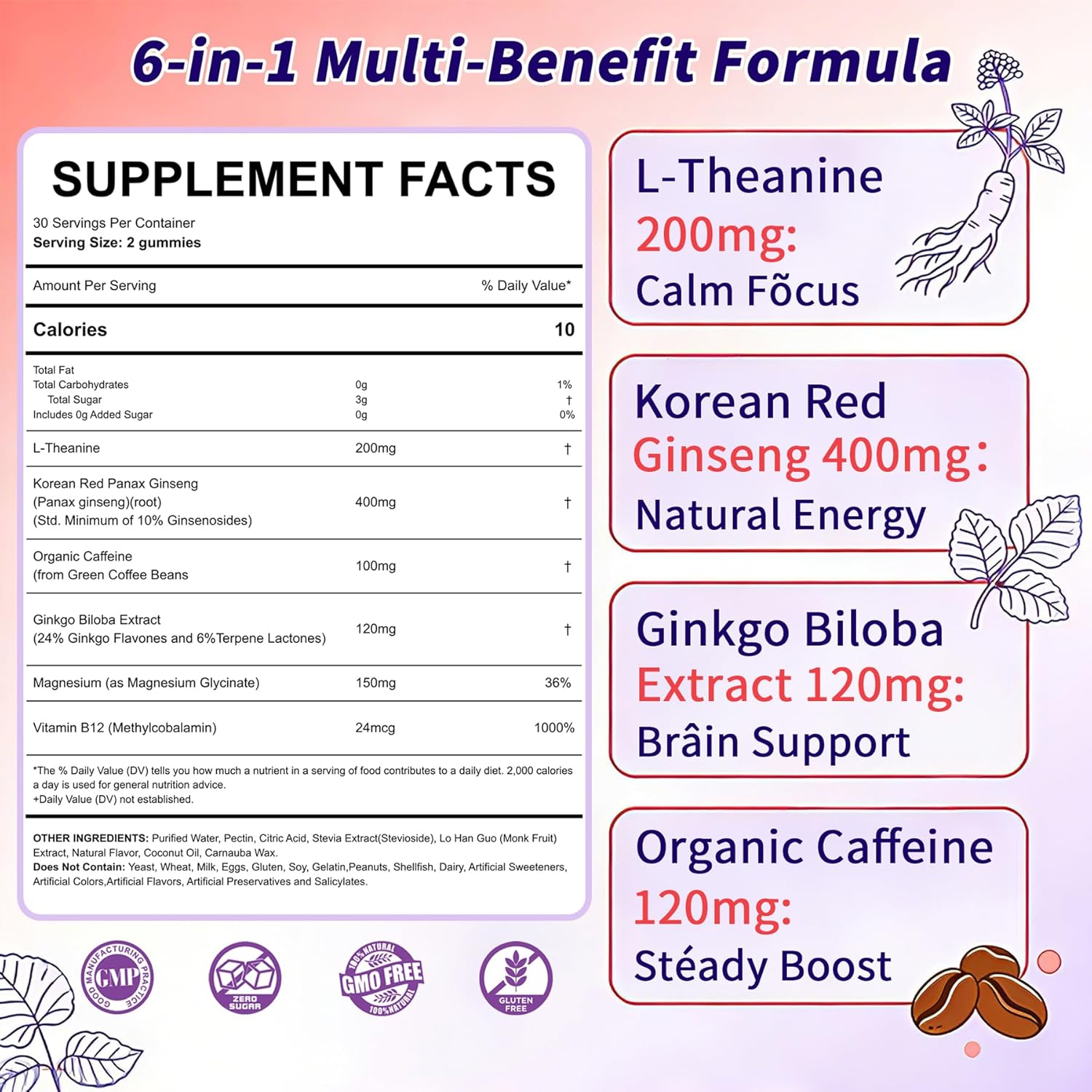 | Special Ingredients | Ginkgo Biloba, Magnesium, l-theanine |
