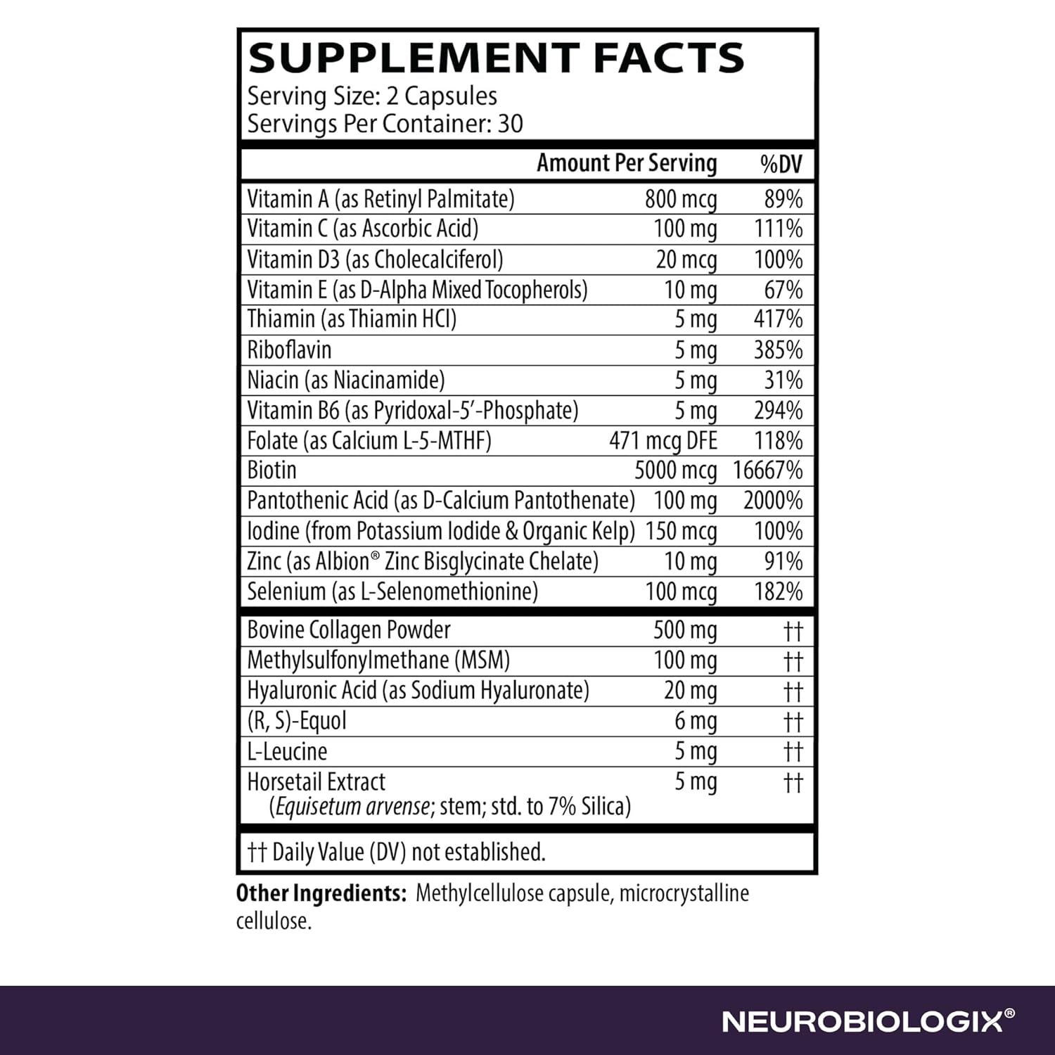 Neurobiologix Hair, Skin & Nail Peptides with Biotin is a professionally formulated beauty supplement designed to support foundational hair, skin, and nail wellness through targeted nutritional supplementation. Often included in hair skin and nails vitamins routines, this formula combines collagen peptides, amino acids, and biotin to support normal keratin-related processes, connective tissue integrity, and nutrient metabolism. Biotin is a key B vitamin frequently associated with biotin for hair growth women searches and plays an essential role in metabolic pathways that support healthy hair, skin, and nails. Collagen peptides provide additional structural nutrition and are commonly included in collagen for women and collagen peptides supplementation. While many consumers explore hair growth products and hair growth vitamins, this formula is designed to support overall beauty wellness without making cosmetic or medical claims. Free from gluten, dairy, soy protein, and GMOs, Hair, Skin & Nail Peptides with Biotin fits seamlessly into a daily routine for women and men seeking clean, professional-grade beauty nutrition support.