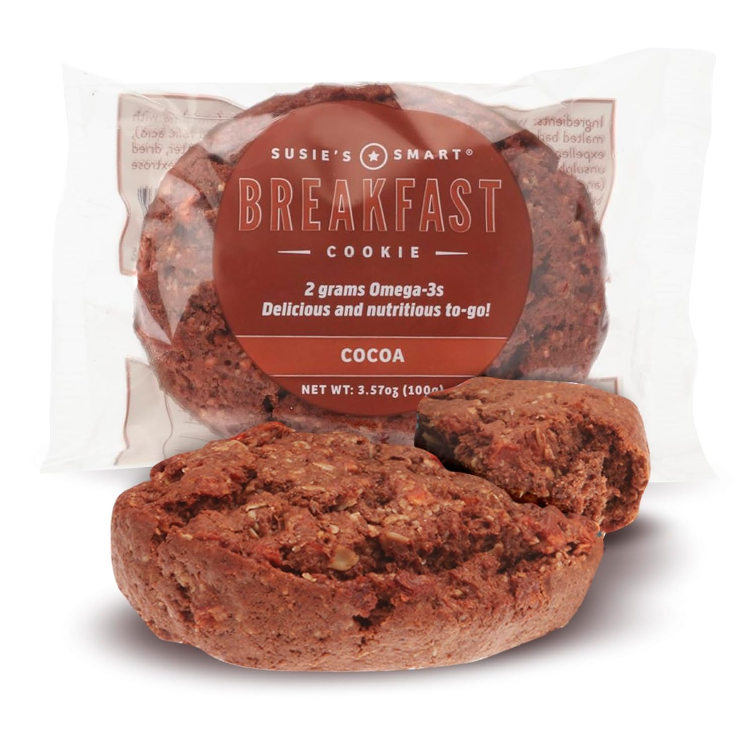 Hi, I'm Susie and I created these all-natural, high Omega-3 Breakfast Cookies after writing a history of the Omega-3 fatty acid research: The Queen of Fats Why Omega-3s were removed from the Western diet and what we can do to replace them (University of California Press, 2006). I wanted to make something that would be a vegetarian, sustainable, and effective way for my family to boost their Omega-3s those heart-healthy, fast-acting fats that are vital for every tissue and cell in our body. And I wanted it to be all natural (of course!) and super satisfying and delicious something that would keep my daughters (and now grandsons!) going for hours. I didn't know it then, but what I wound up creating is the ultimate convenience food. Susie's Smart Breakfast Cookies are a great breakfast to go or anytime snack. (They are also wonderful for lunch along with a cup of soup or yogurt.) Each individually-wrapped cookie has 8 grams of protein and 20 grams of whole grains, as well as the 2 grams of Omega-3s. They are loaded with oatmeal and dried apples and other fruits so they will really keep you going for whatever your day brings! Because they provide such perfect portion control, they even help with dieting! Please give them a try and let me know what you think. Also please know that our Breakfast Cookies are shipped directly to you from our bakery, which has the highest health and safety standards. In this time of social distancing, you don't have to leave your home to have a supply of these healthy, all natural meal replacements on hand.Be well,Susie