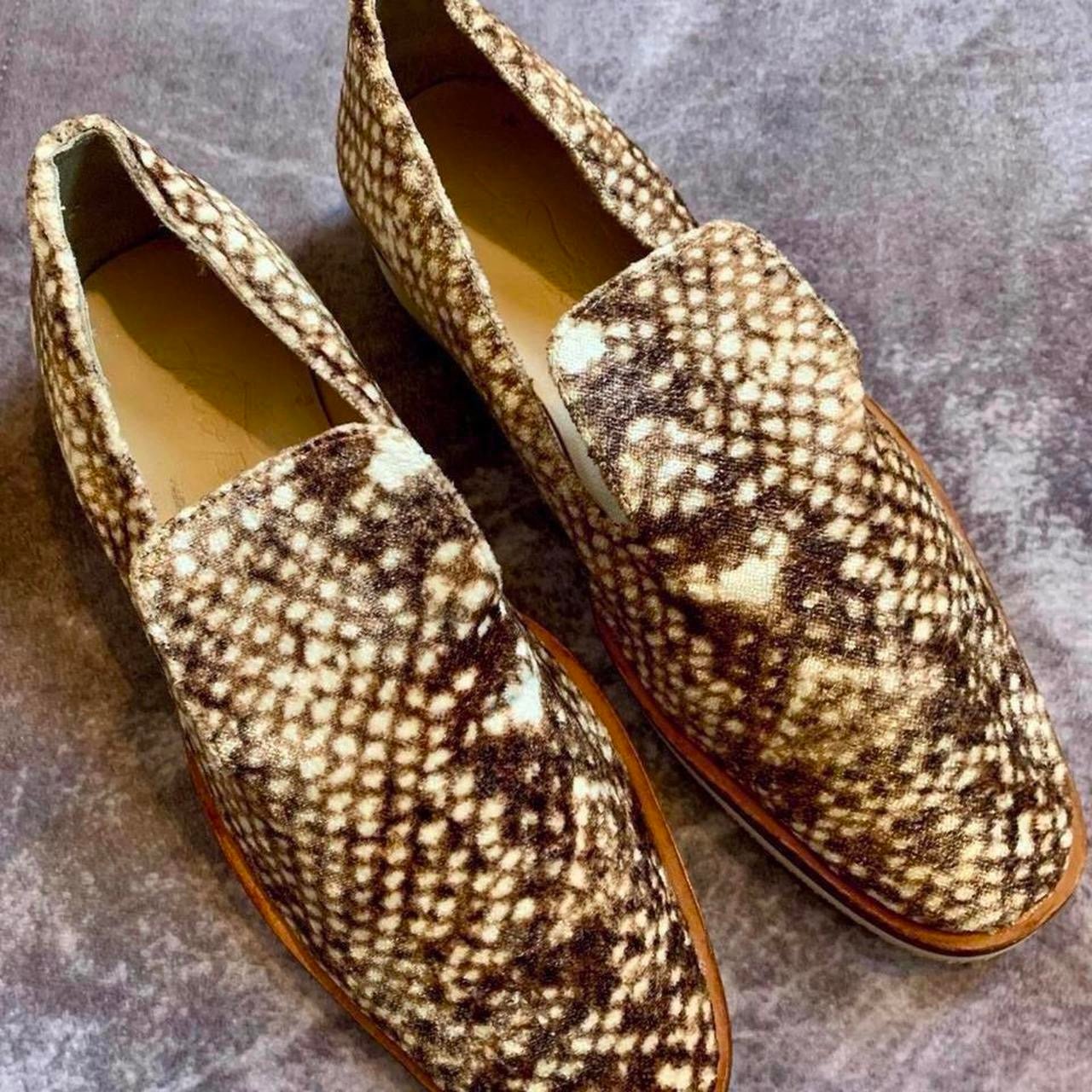 Free People Snake Eyes Velvet Slip On Loafers.. Size EU 39/ US 8.5. Cream & Brown.
