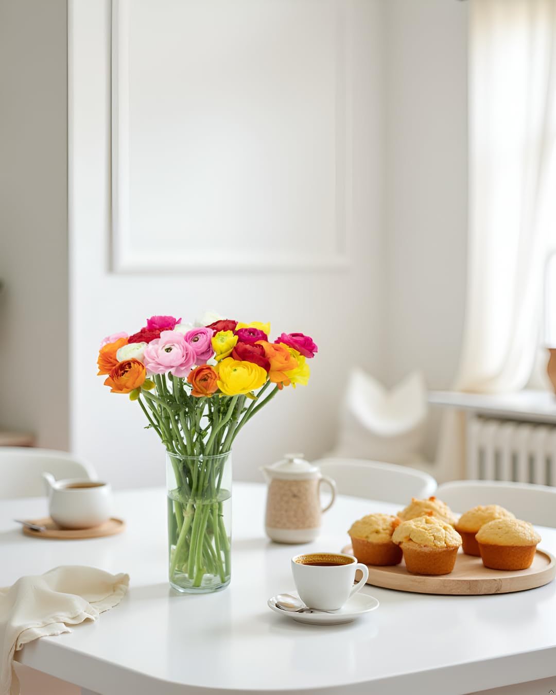 Add color and charm to any space with this vibrant bouquet of 20 fresh ranunculus stems in a beautiful mix of rainbow hues. Known for their layered petals and soft, full blooms, these flowers create a rich, textured display that feels both elegant and cheerful. Colors vary naturally, making each bouquet unique and visually striking. Perfect for gifting or everyday enjoyment, this ranunculus bouquet brings warmth and freshness to any room. The flowers are harvested at the ideal stage and shipped fresh to ensure lasting enjoyment as the blooms gradually open. Trim the stems, place them in your favorite vase with fresh water, and enjoy their natural beauty as they reach full bloom. Includes 20 fresh ranunculus stems in assorted colors. Glass vase not included. Shipped fresh and ready to arrange.