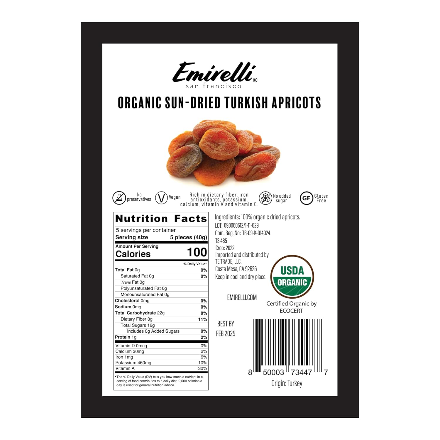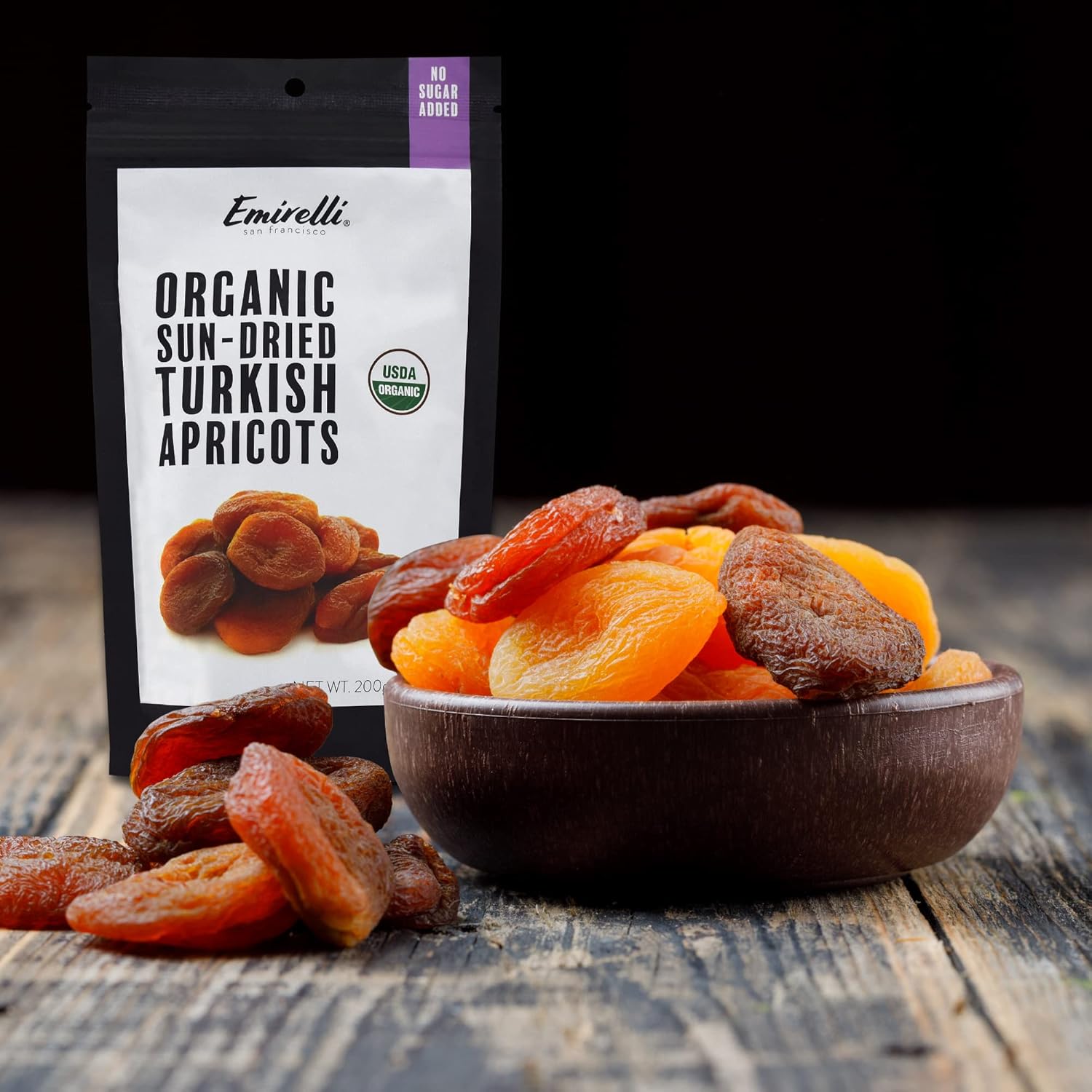 Emirelli Organic Turkish Dried Apricots, Vegan and Sun Dried Fruits, Gluten Free Snacks, No Sugar Added and Non GMO, Resealable Pouche, Healthy, Rich Nutritional Values (Organic Apricots, 6 Pack)
