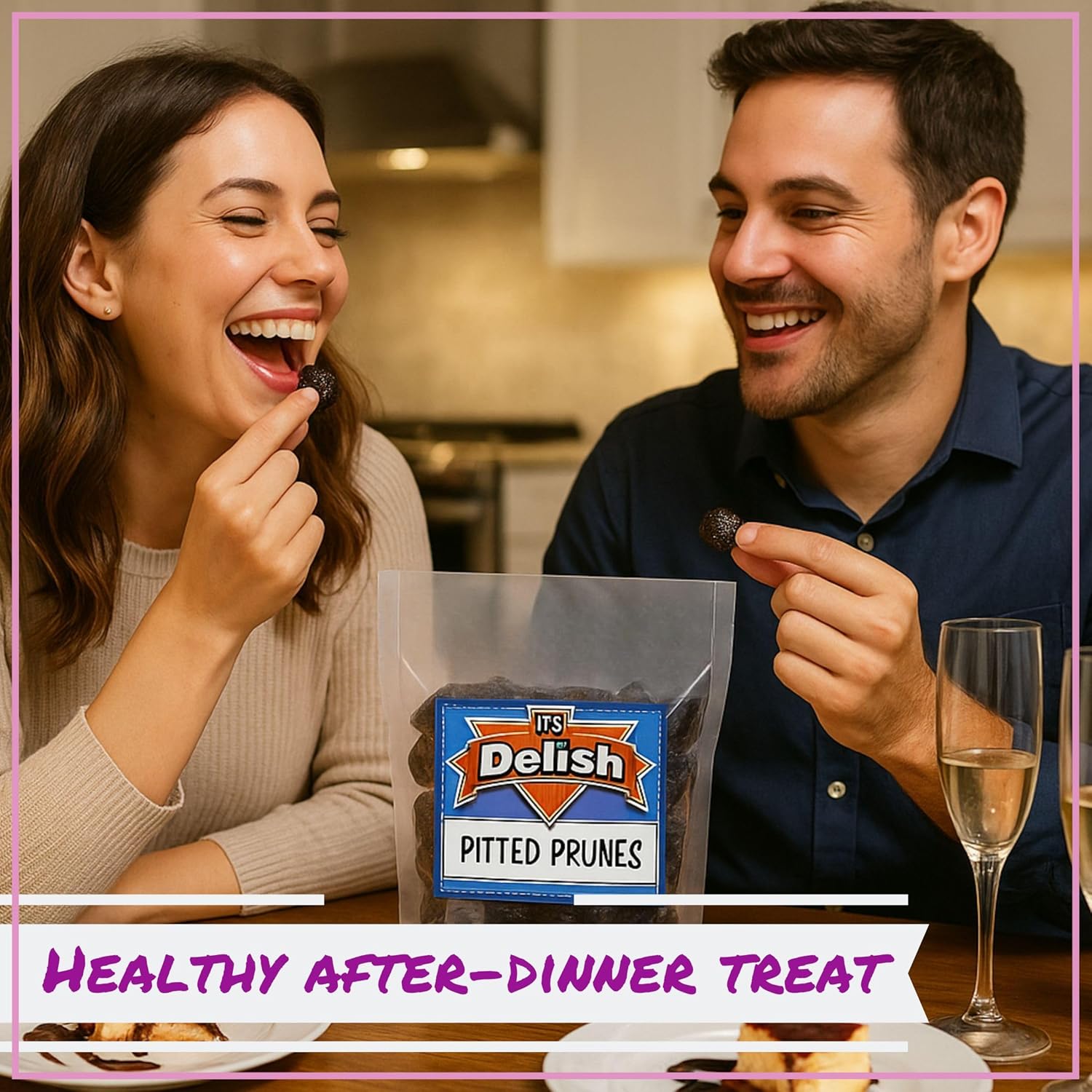 Delicious Naturally Sweet Dried Pitted Prunes. May contain occasional pits, as per industry standard. Â sealed bag Fresh, tasty and healthy, source of fiber and vitamin A Great for baking, snacking, gift trays and mixed fruit Certified Kosher OU Packaged in the USA